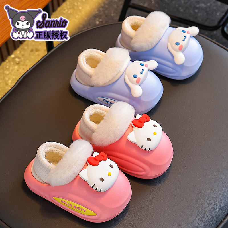 三丽鸥冬季儿童棉拖鞋男女童保暖加绒EVA防滑库洛米小童宝宝棉拖