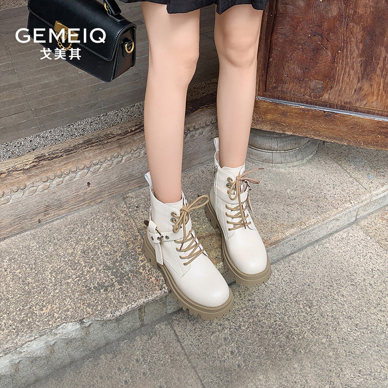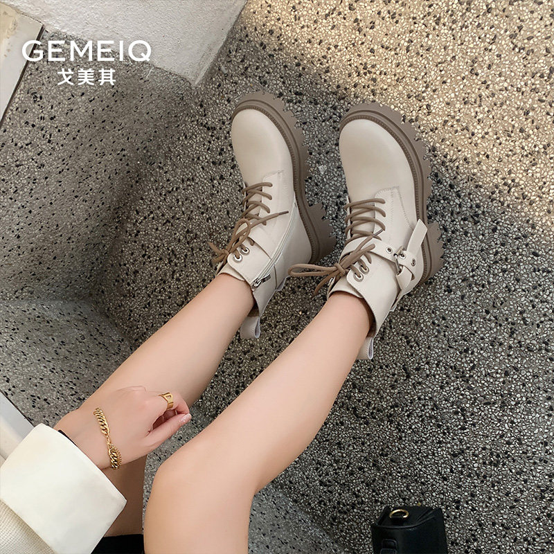 戈美其厚底马丁靴女款舒适新款复古英伦风春季单靴机车靴粗跟短靴