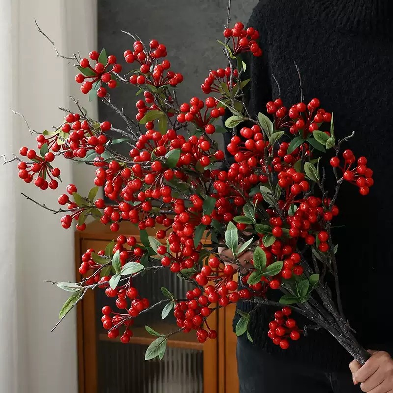 发财果红果干花花束仿真花装饰摆件蔷薇果乔迁喜庆花瓶插花年宵花