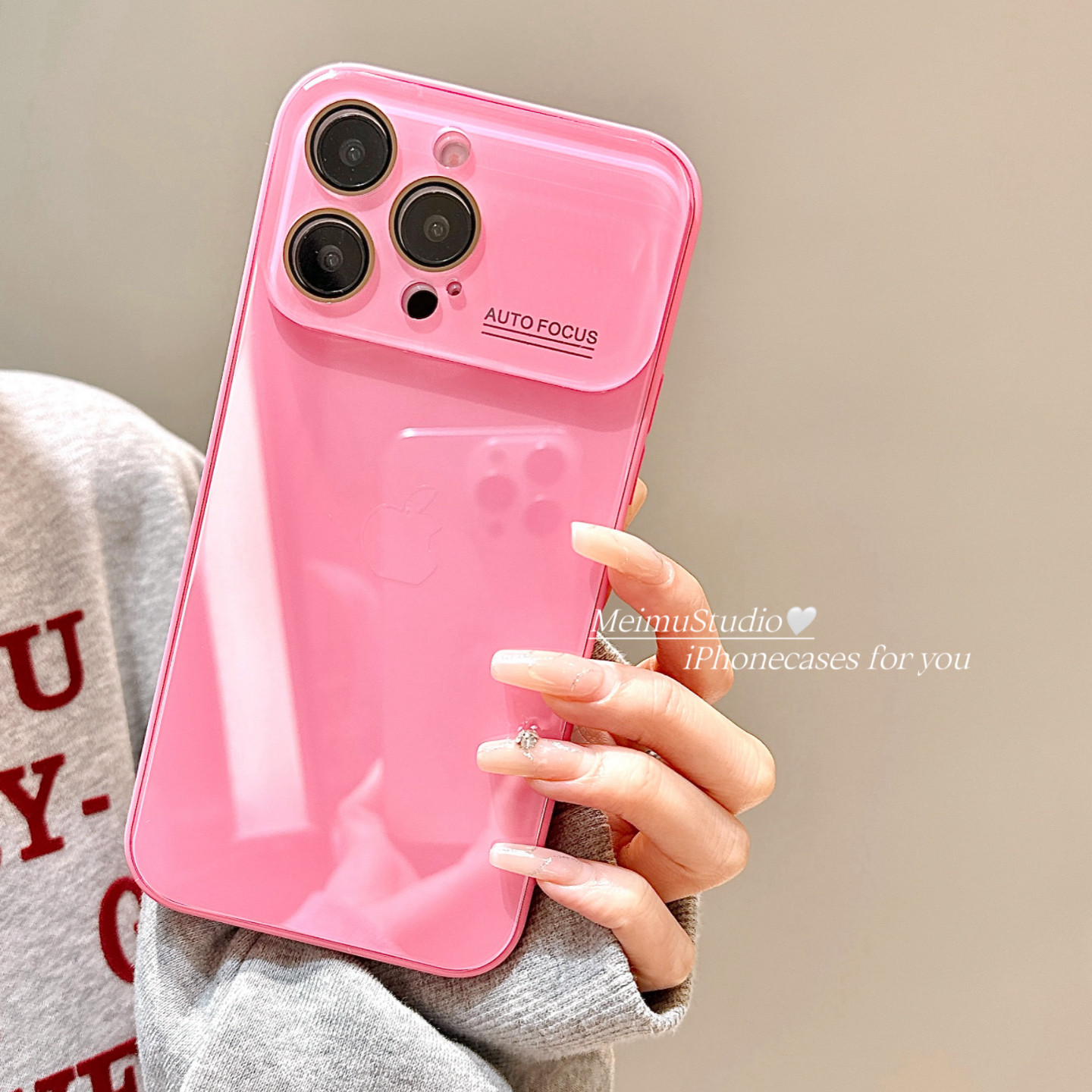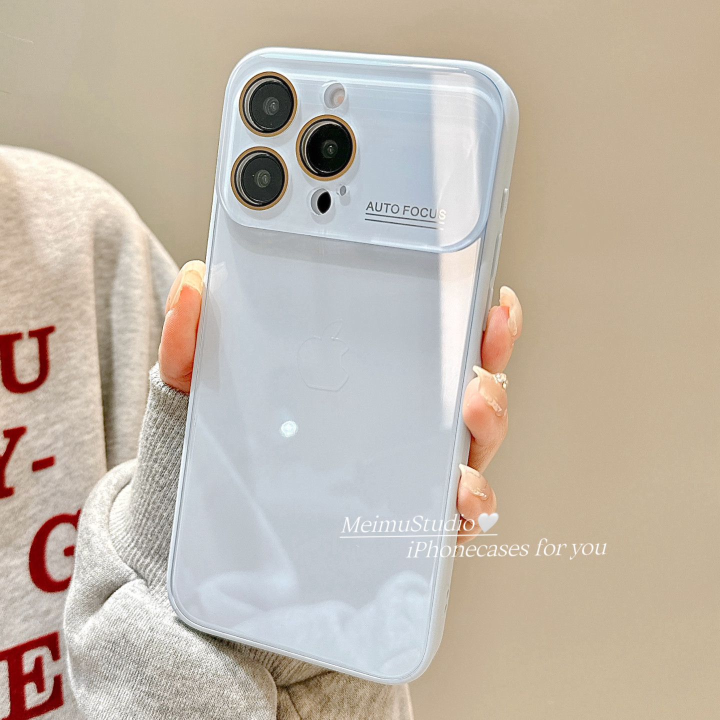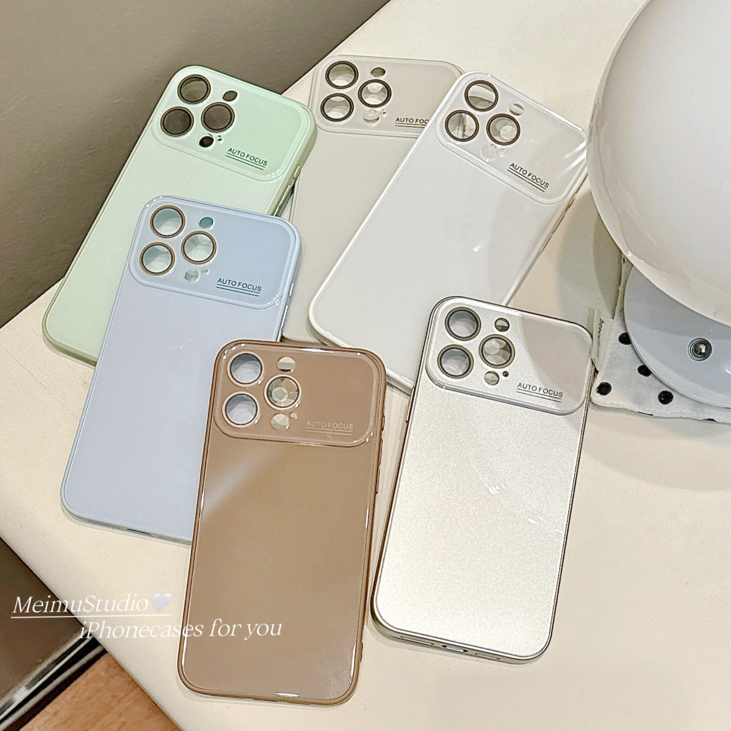 韩系ins简约纯色玻璃大视窗适用苹果手机壳