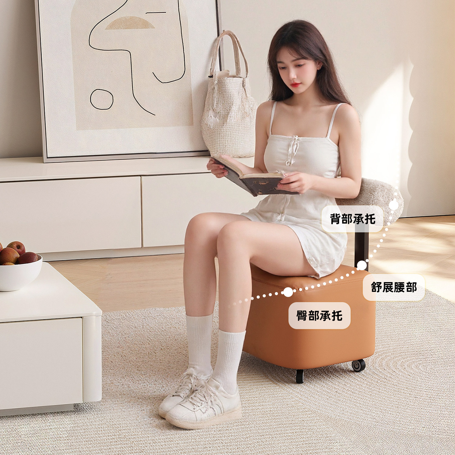 小户型家用换鞋矮凳带轮可移动溜溜凳简约现代客厅靠背沙发小凳子