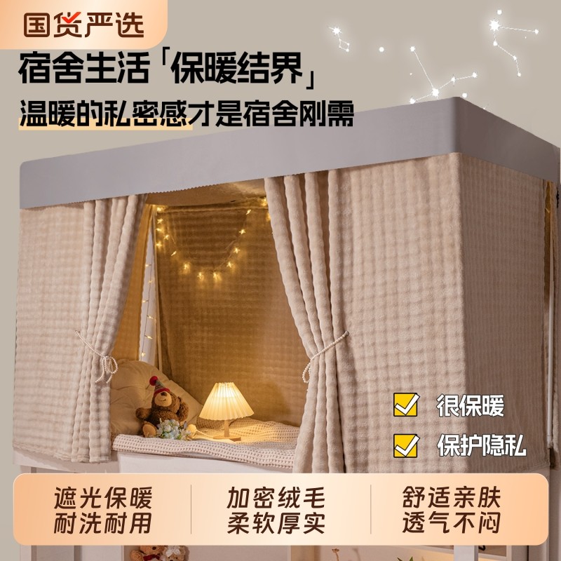 学生宿舍2025新款遮光床帘獭兔毛一体式寝室上下铺专用全包围床幔
