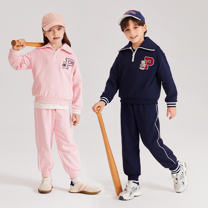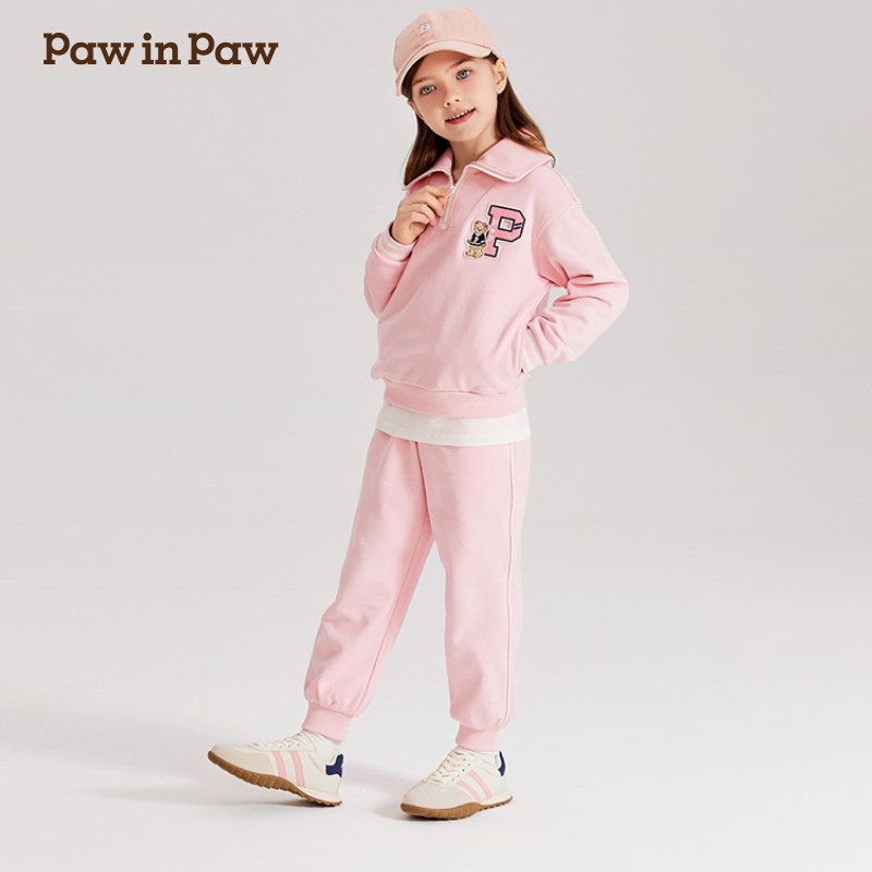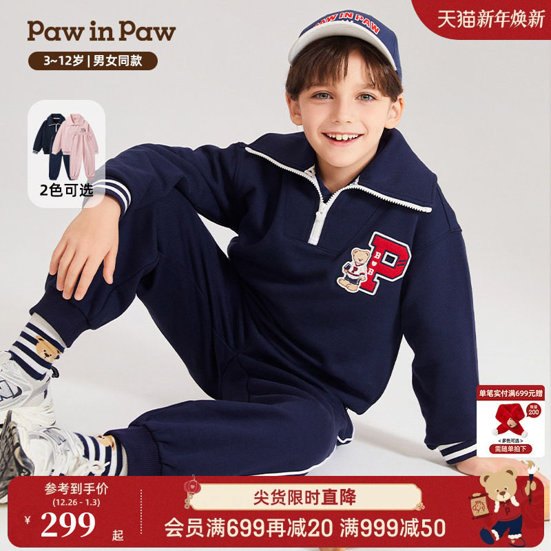 PawinPaw卡通小熊童装春季男女童半翻领简约舒适卫衣套装