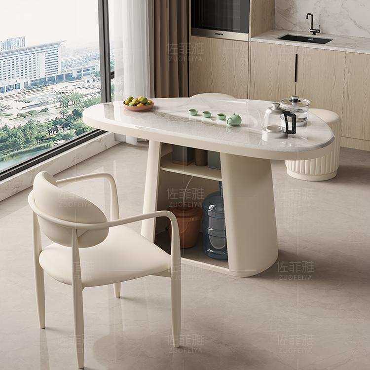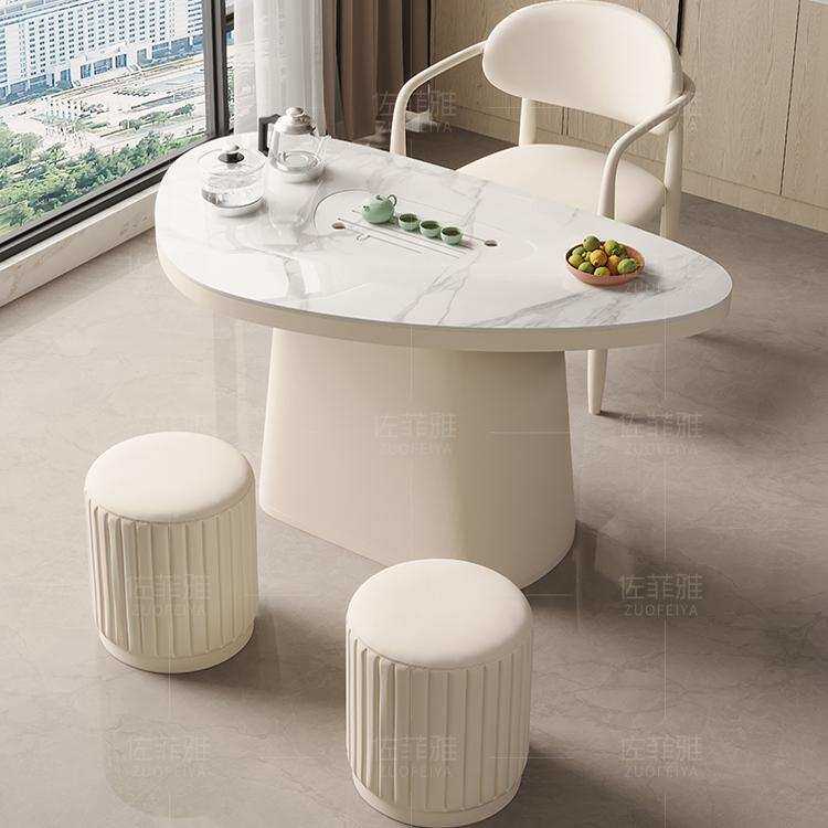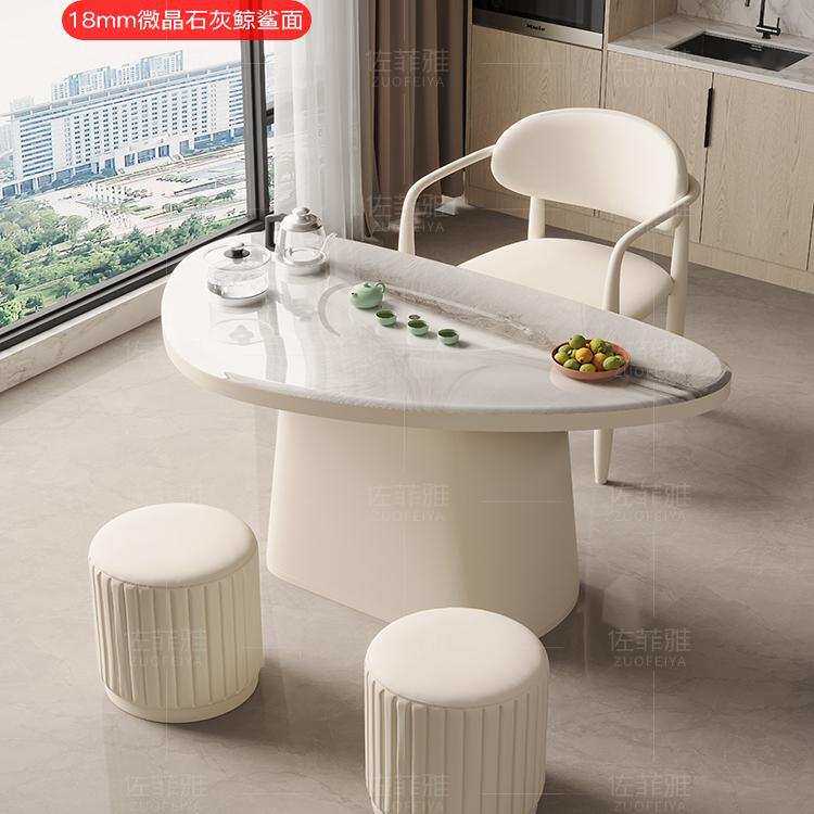 微晶石阳台茶桌椅组合现代简约家用小户型奶油风茶台岩板泡茶桌