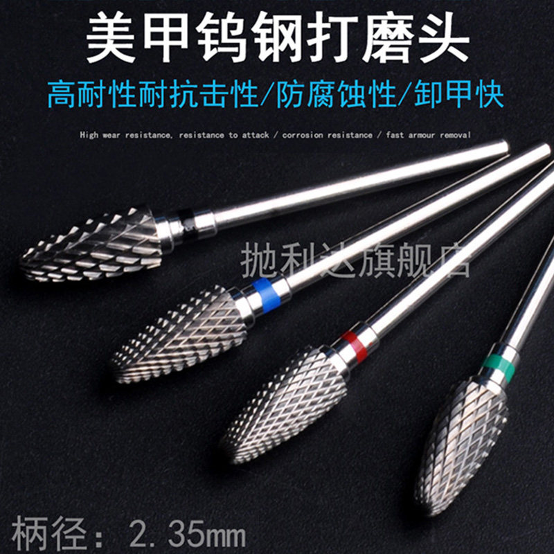 钨钢美甲打磨头小型打磨机钻头电动牙机刀头2.35mm铣刀卸指甲工具