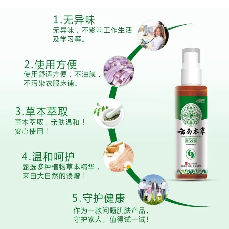 云南本草喷雾止痒去脚臭出汗脚汽喷剂臭脚除臭草本杀菌止汗鞋子