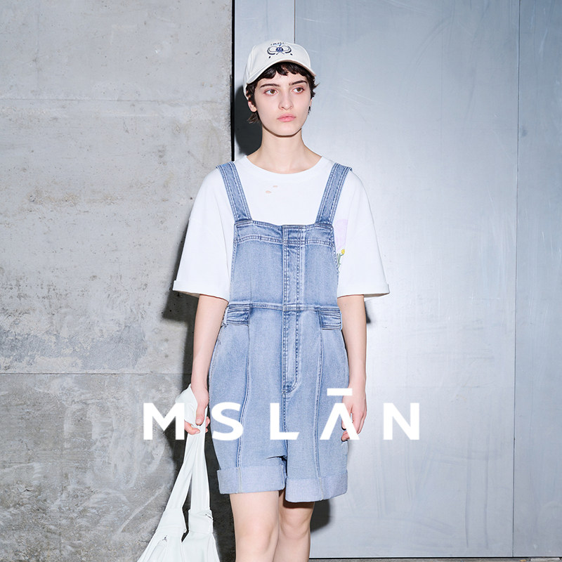 MSLAN丨26春减龄小个子连体裤 学院风翻折边短裤背带裤女MGBB219