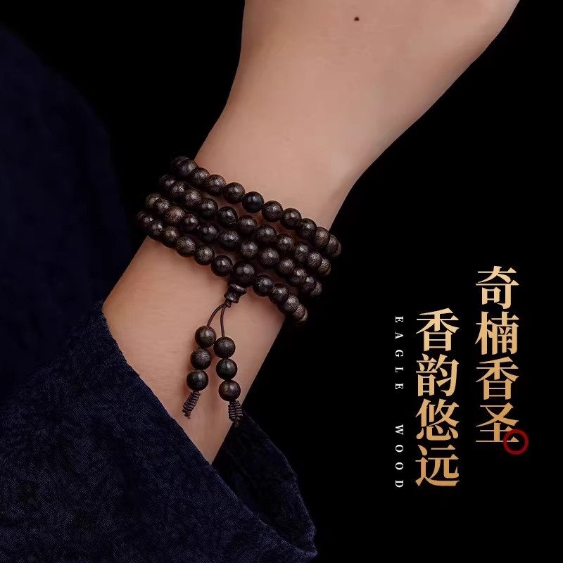 天然芽庄奇楠沉香佛珠手串108颗沉香木念珠男女手链转运珠沉水级