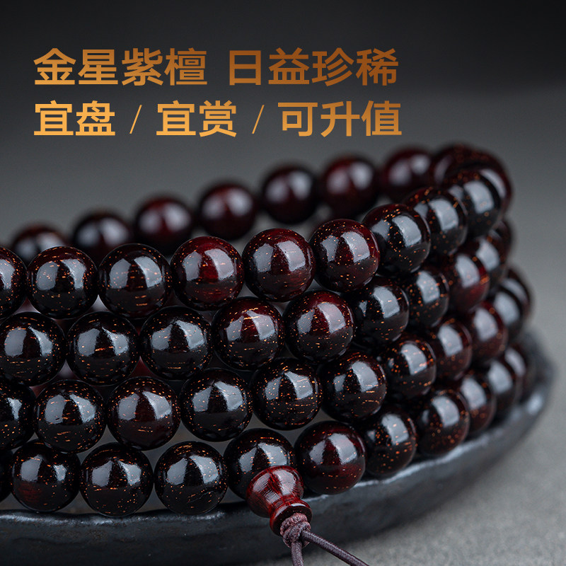 木质小叶紫檀手串满金星2.0檀木文玩印度佛珠108颗男女手链包浆