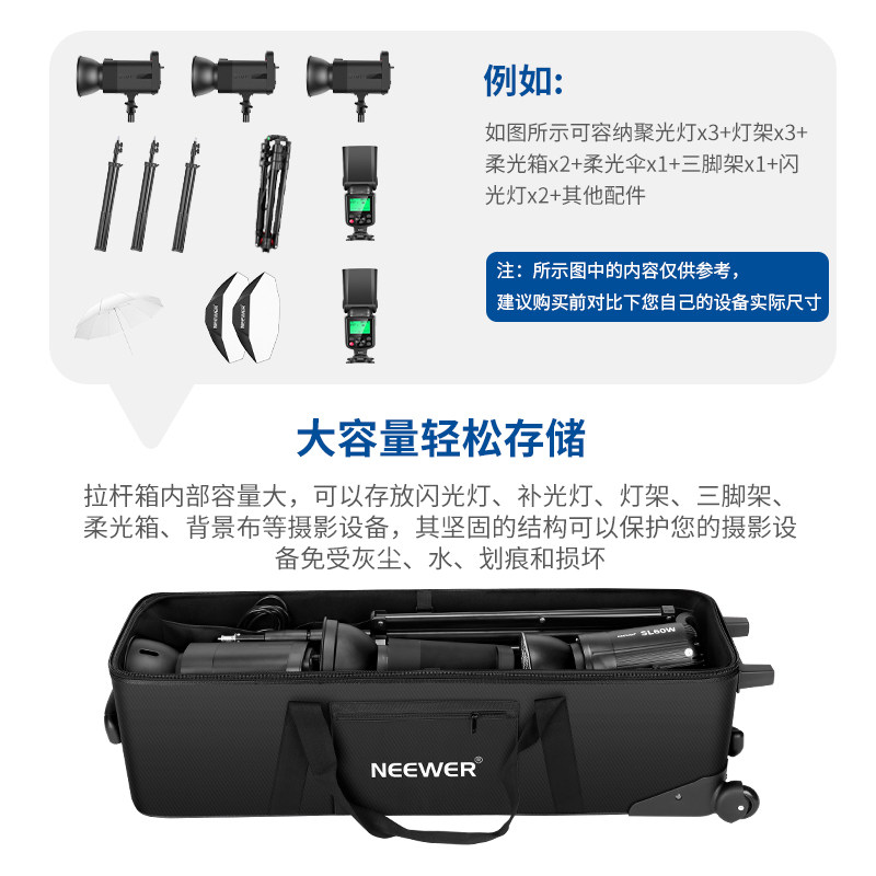 NEEWER/纽尔 大号摄影拉杆箱外拍影棚闪光灯补光灯三脚架灯架支架设备灯具摄影器材包保护防护箱包旅行收纳箱
