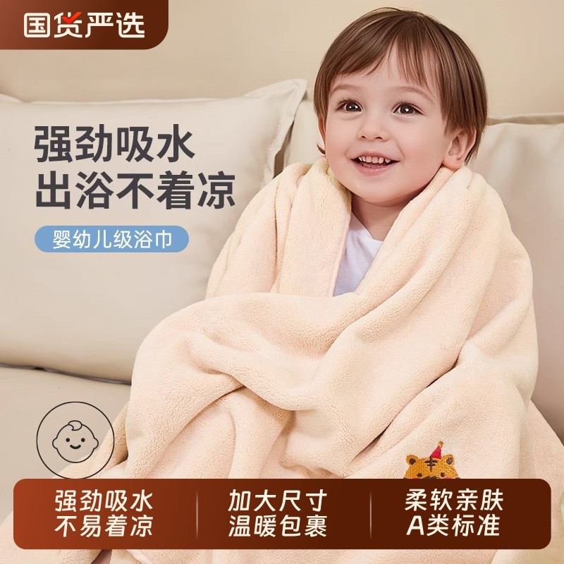 婴儿浴巾儿童宝宝新生超软洗澡非全棉纯棉毛巾专用a类男孩女孩大