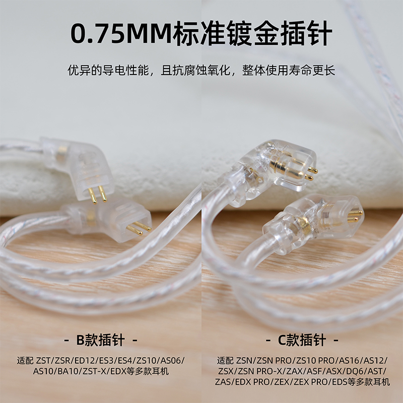 KZ 原装镀银升级线材耳机线无氧铜镀银线芯发烧DIY耳机线材TYPE-C