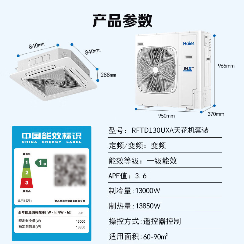 海尔商用6匹大5匹空调天花机吸顶嵌入一级能效中央空调官方旗舰店