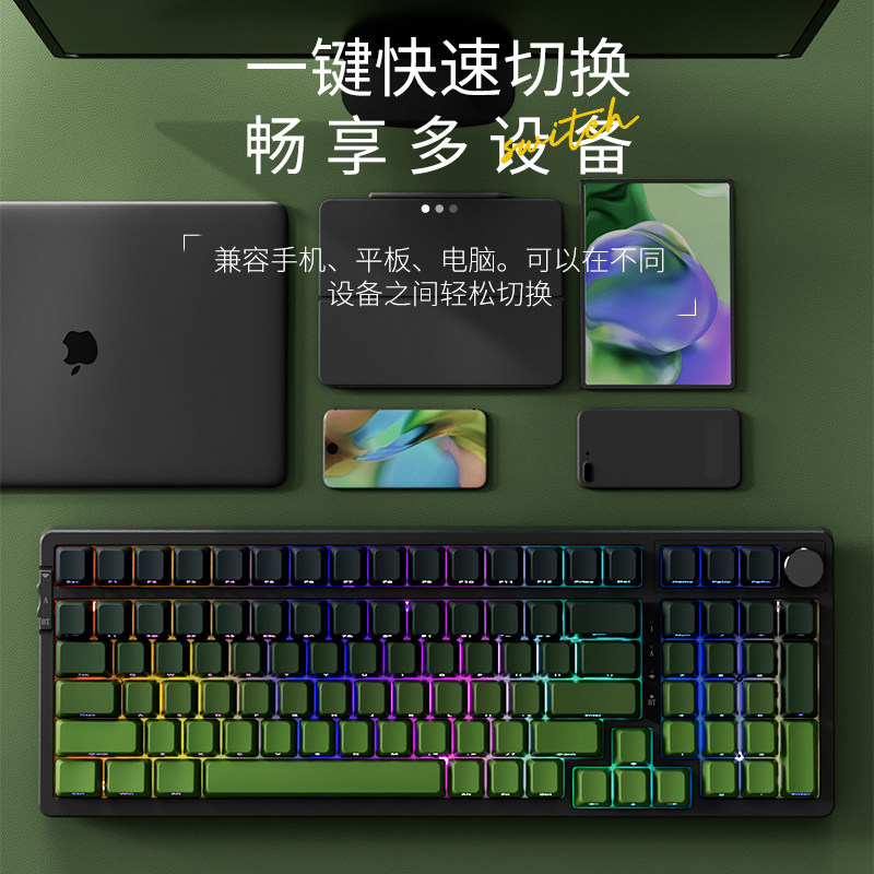 黑爵AK992抹茶侧刻无线机械键盘Gasket结构客制化套件98键游戏