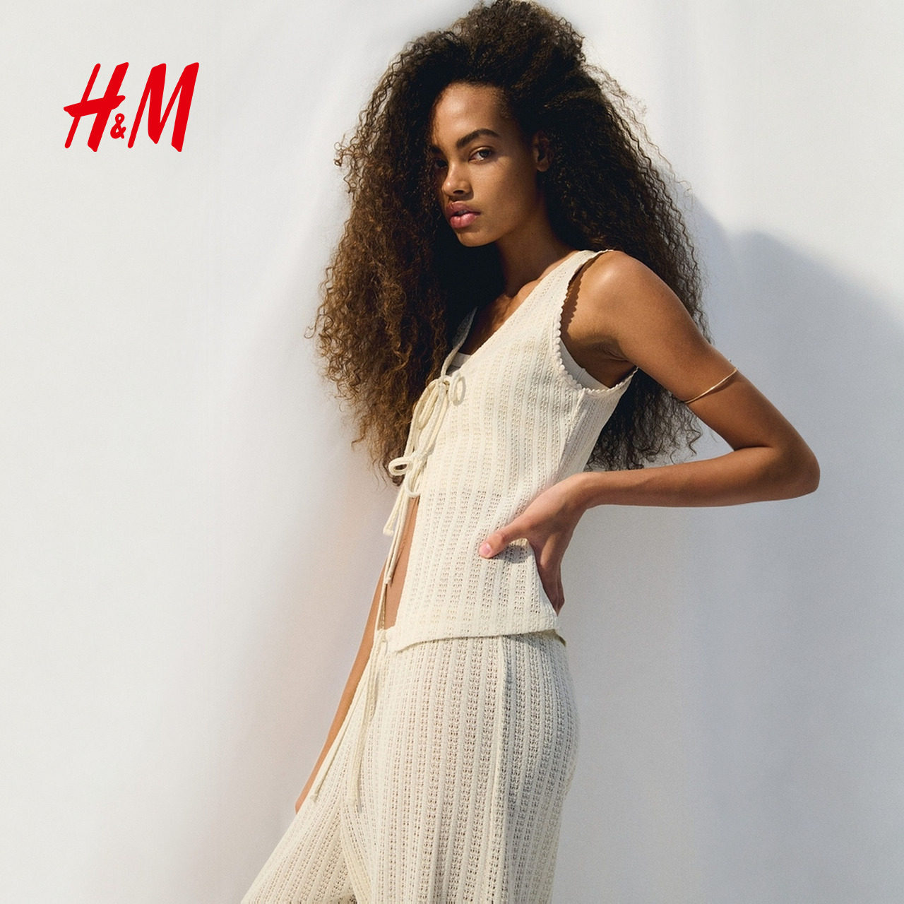 HM春季女装马甲正面系带针织上衣1296455