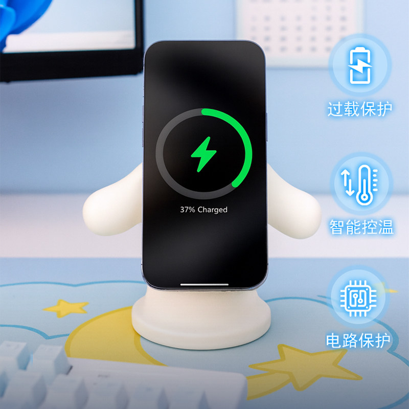 创意magsafe磁吸无线充手机支架大耳狗桌面充电底座适用于iPhone