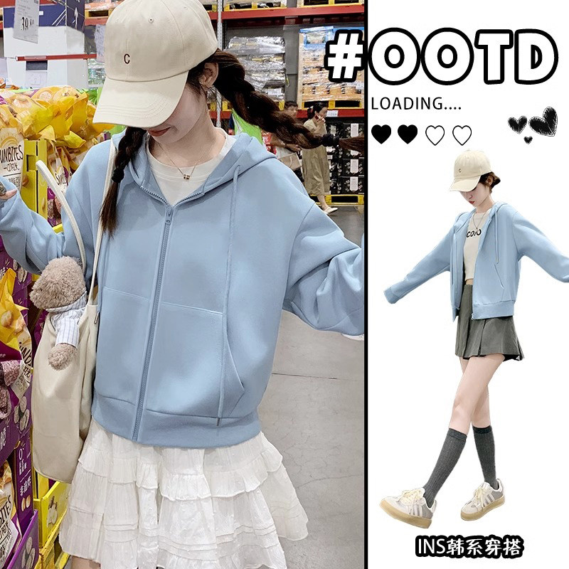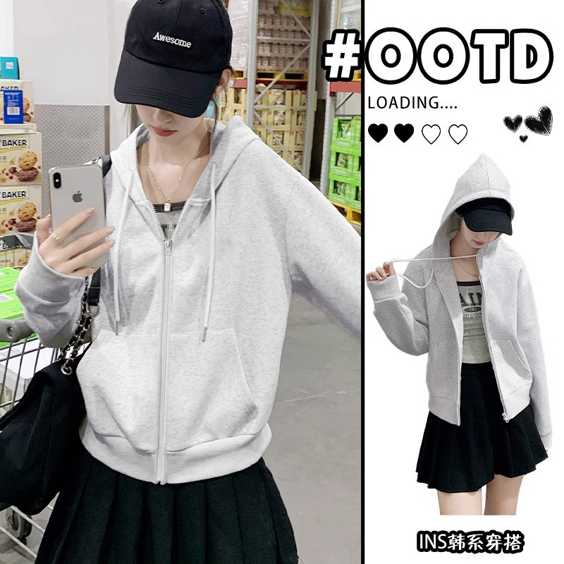 三福卫衣开衫2025新款秋季连帽情侣款外套宽松慵懒风灰色上衣女装