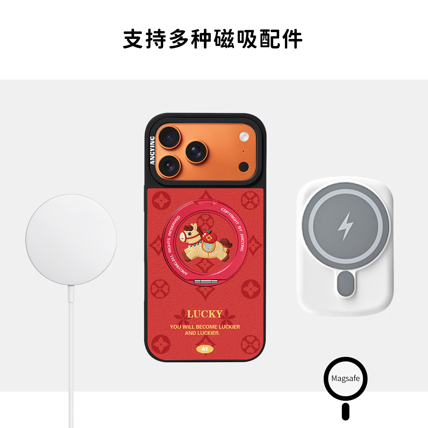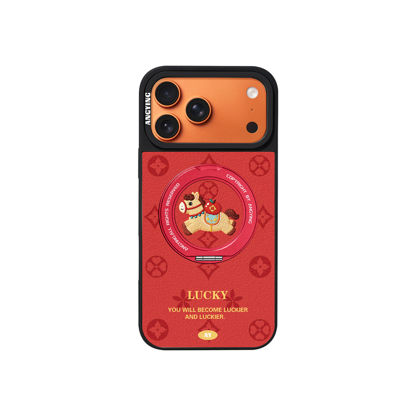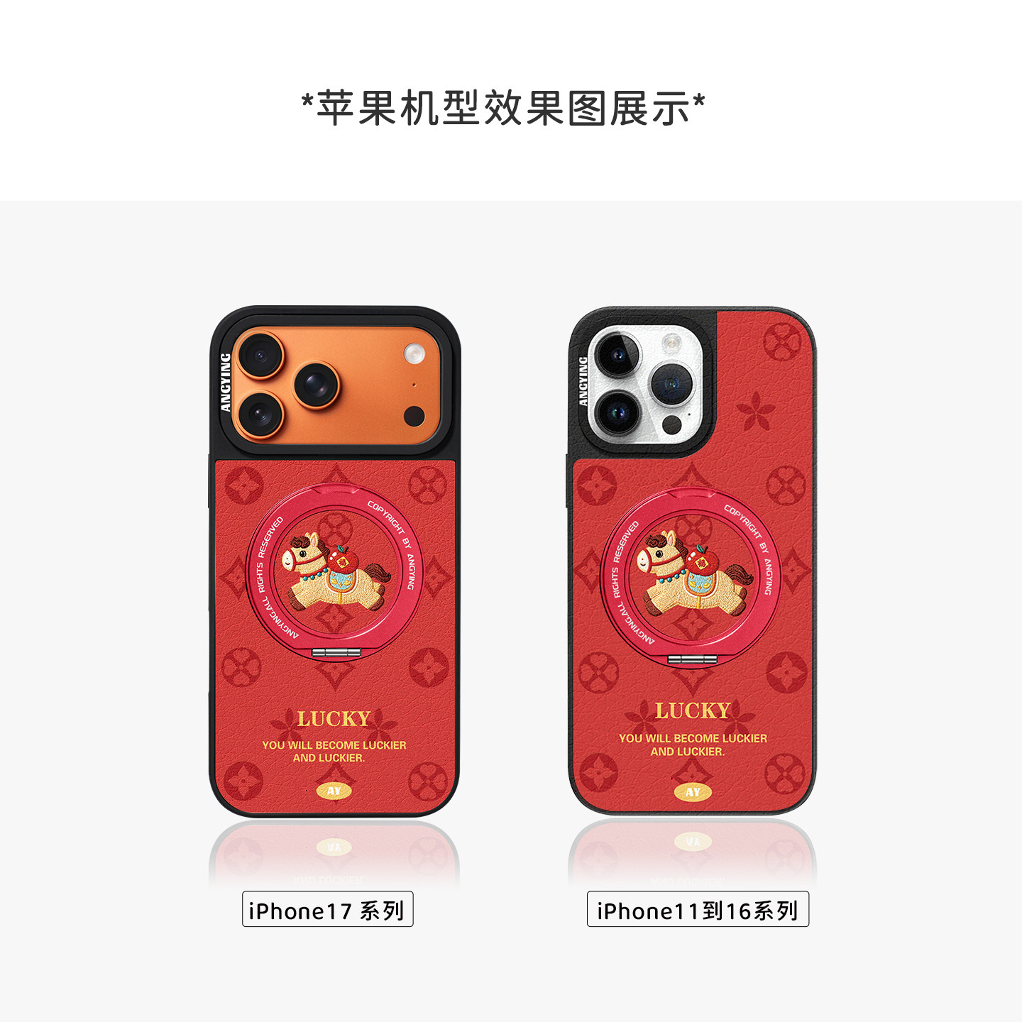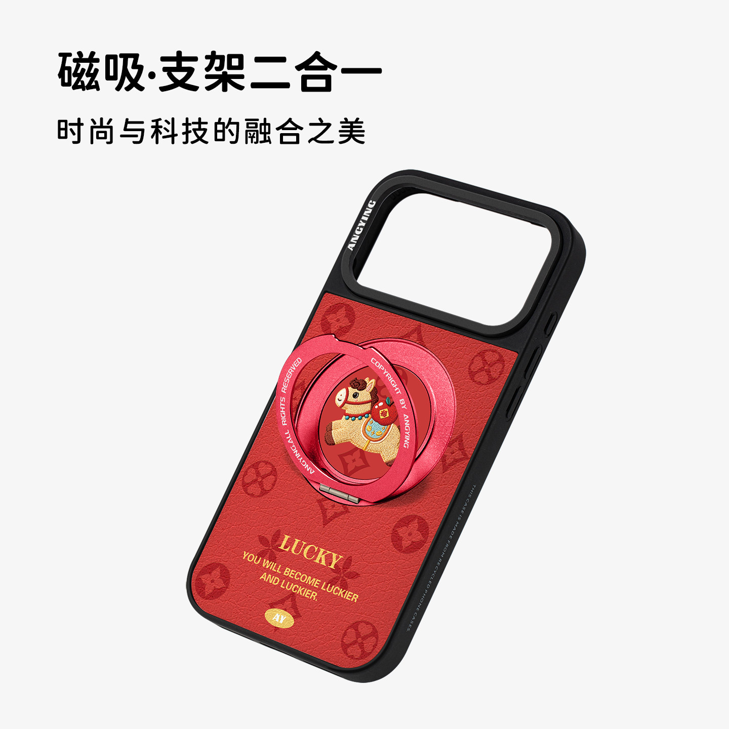 ANGYING × 福气小马适用苹果17promax手机壳新款iphone16pro磁吸带支架ip15支点Yo6马年红色简约的套高级感