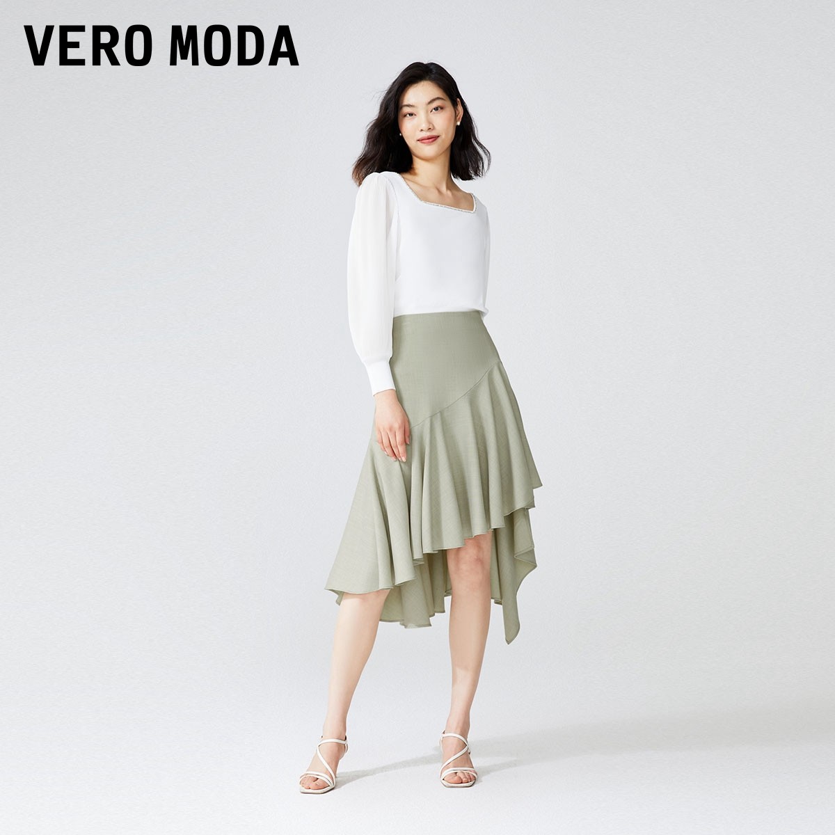Vero Moda奥莱半身裙秋季清仓优雅通勤不规则下摆中腰女百搭流行