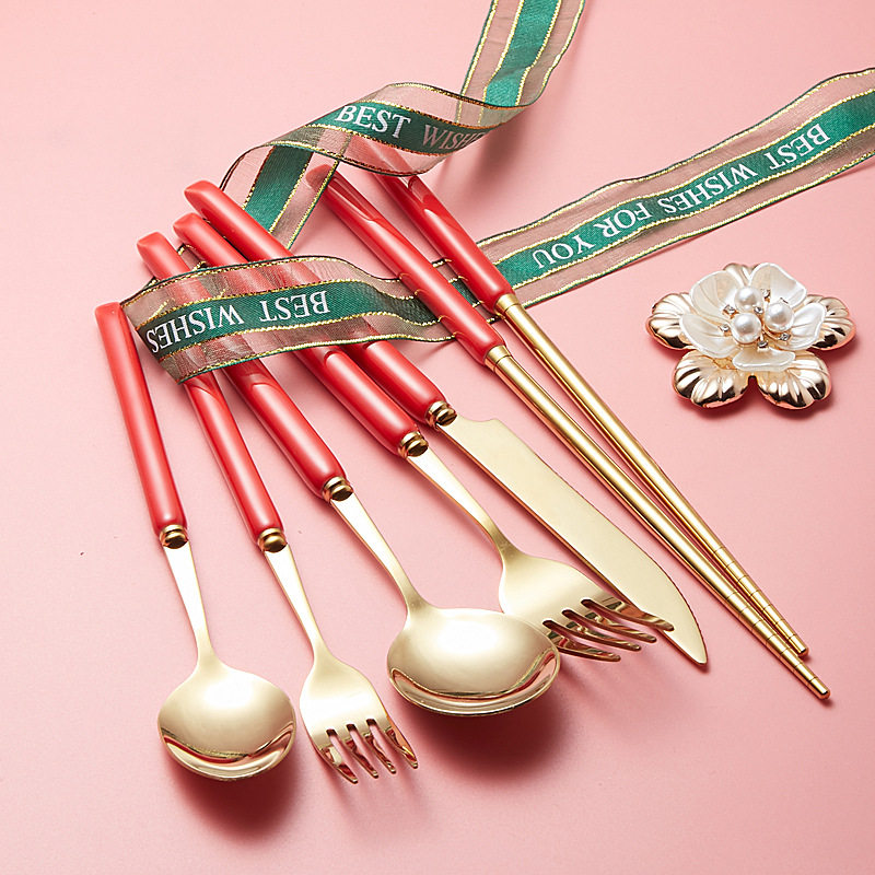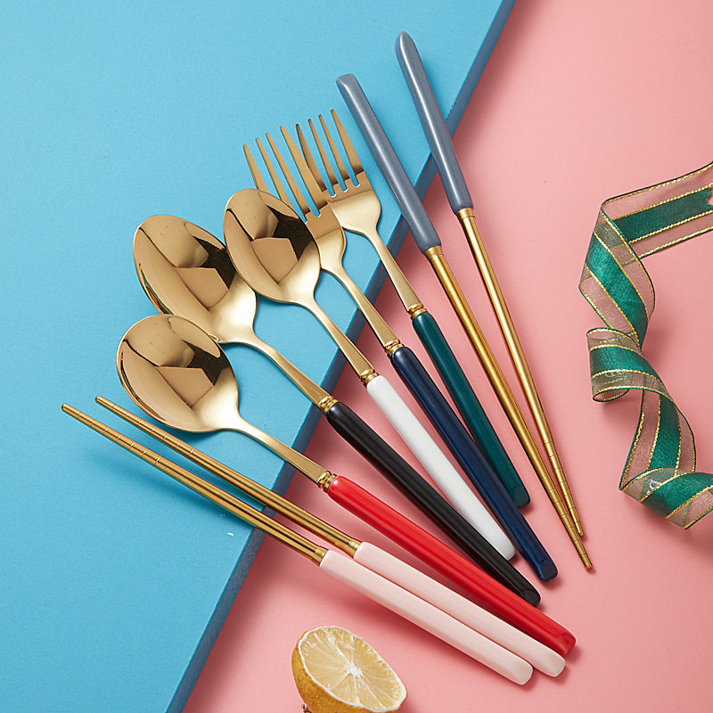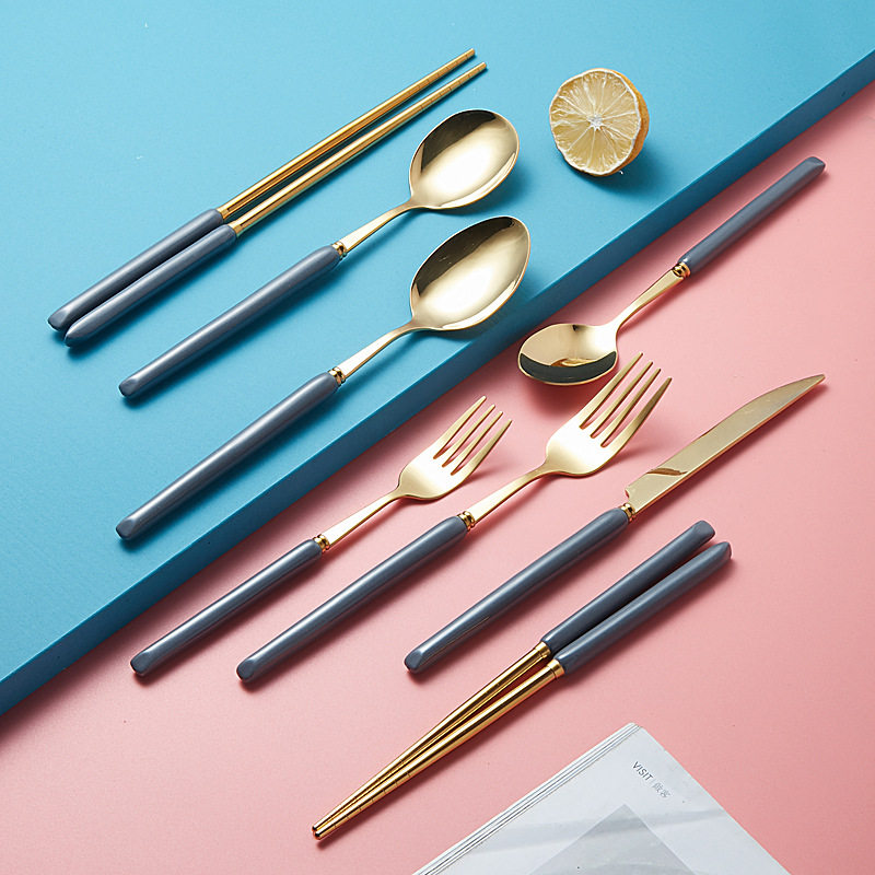 亚马逊北欧轻奢陶瓷不锈钢餐具刀叉勺筷子西餐具牛排刀叉餐具