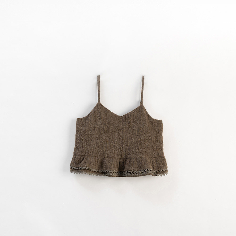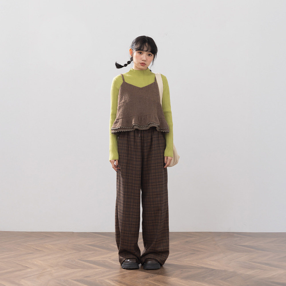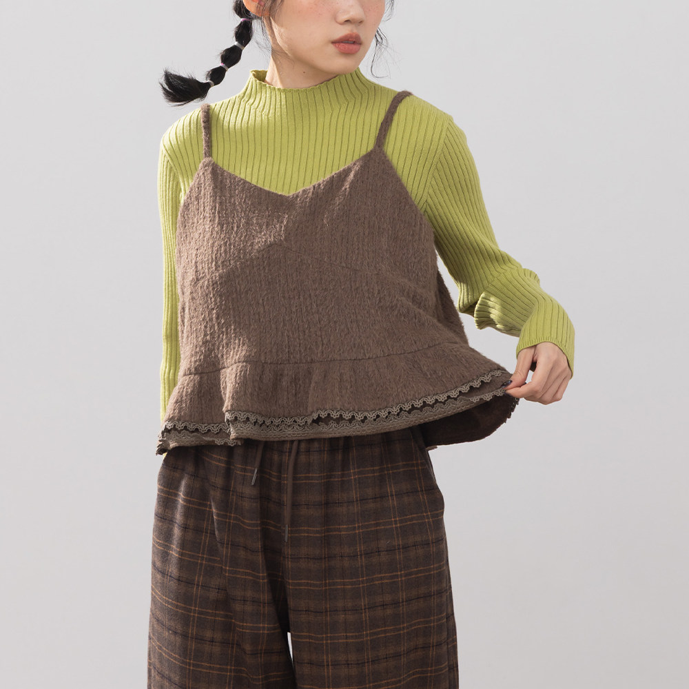 QUEENSHOP 2025秋冬新品女装蕾丝下摆毛绒罩衫吊带背心咖01099422