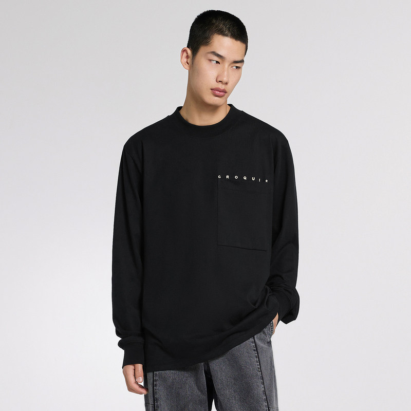 速写outlets奥莱男装春秋T恤棉质宽松圆领长袖刺绣字母休闲舒适潮