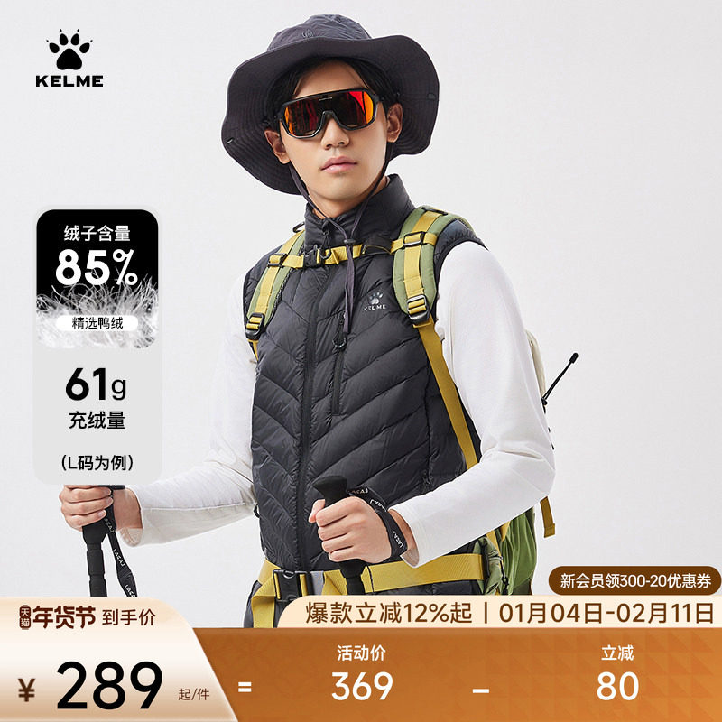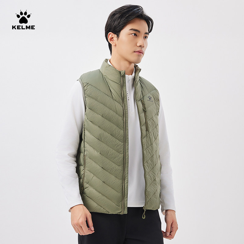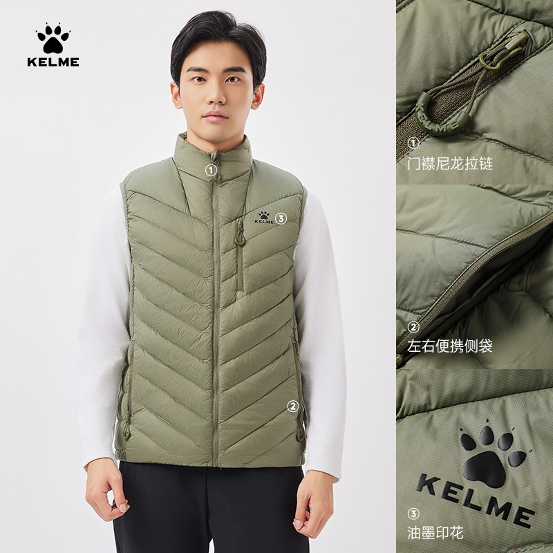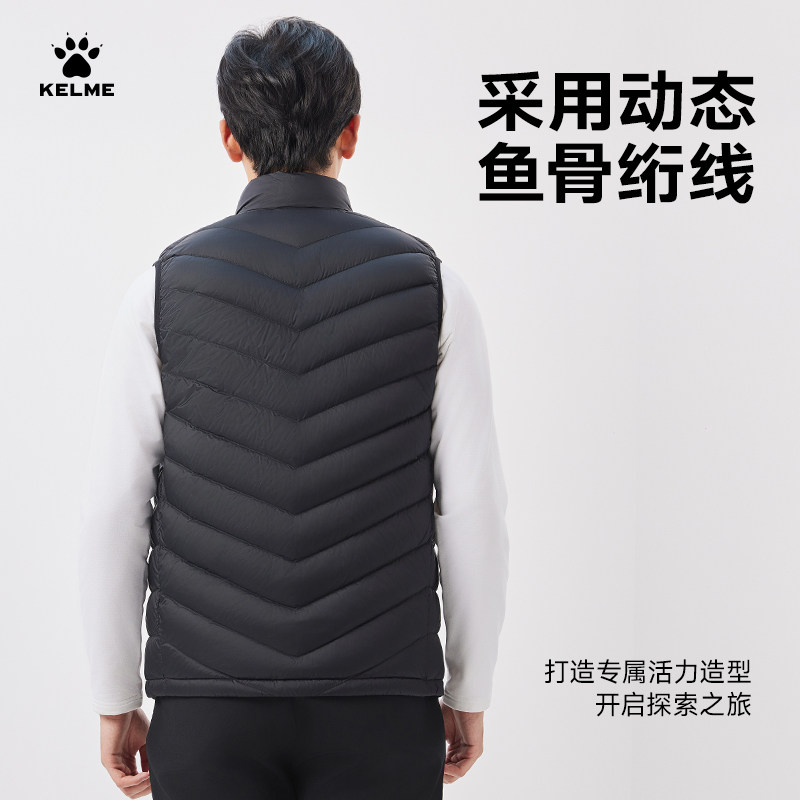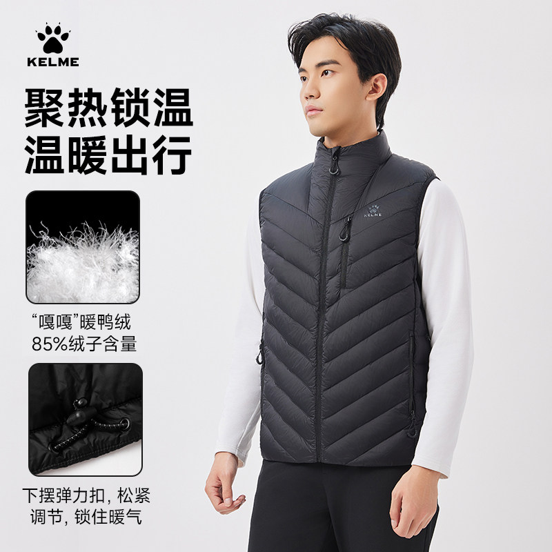 KELME卡尔美户外轻薄羽绒马甲男冬保暖立领运动跑步马夹坎肩外套