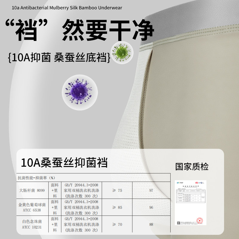 唤醒野兽冰丝超薄无痕男士内裤100A抗菌宽边腰带生蚝素健康四角裤
