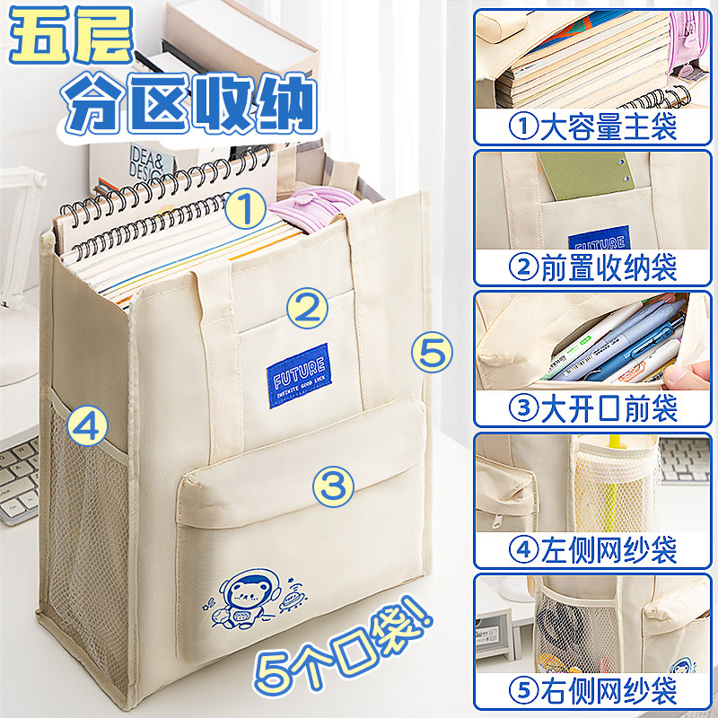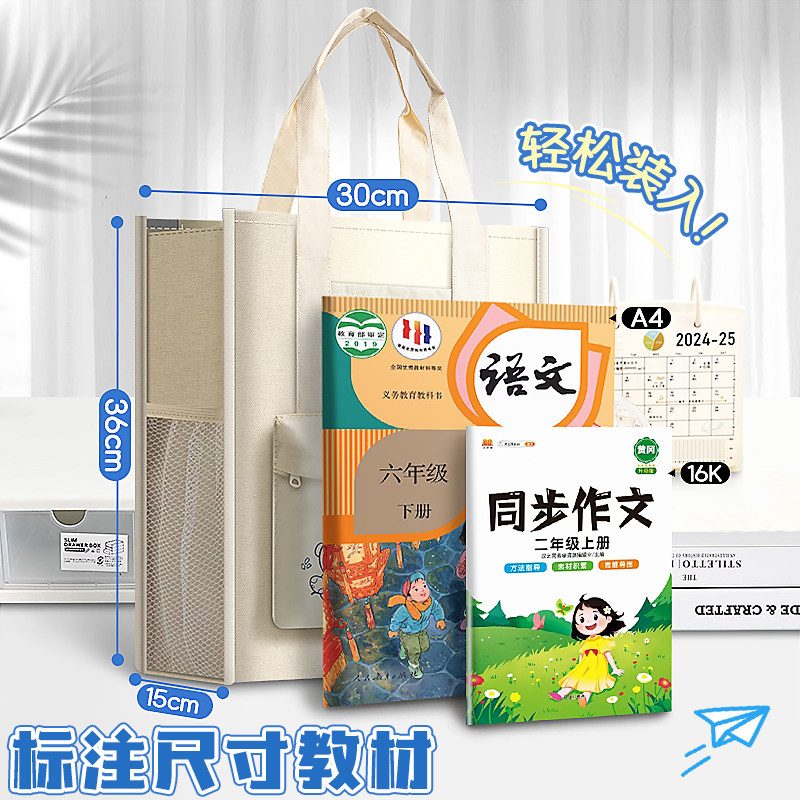 补习袋手提袋拎书袋大容量补课包简约纯色帆布袋初中生专用作业收纳袋试卷美术袋小学生男生女孩儿童手提包