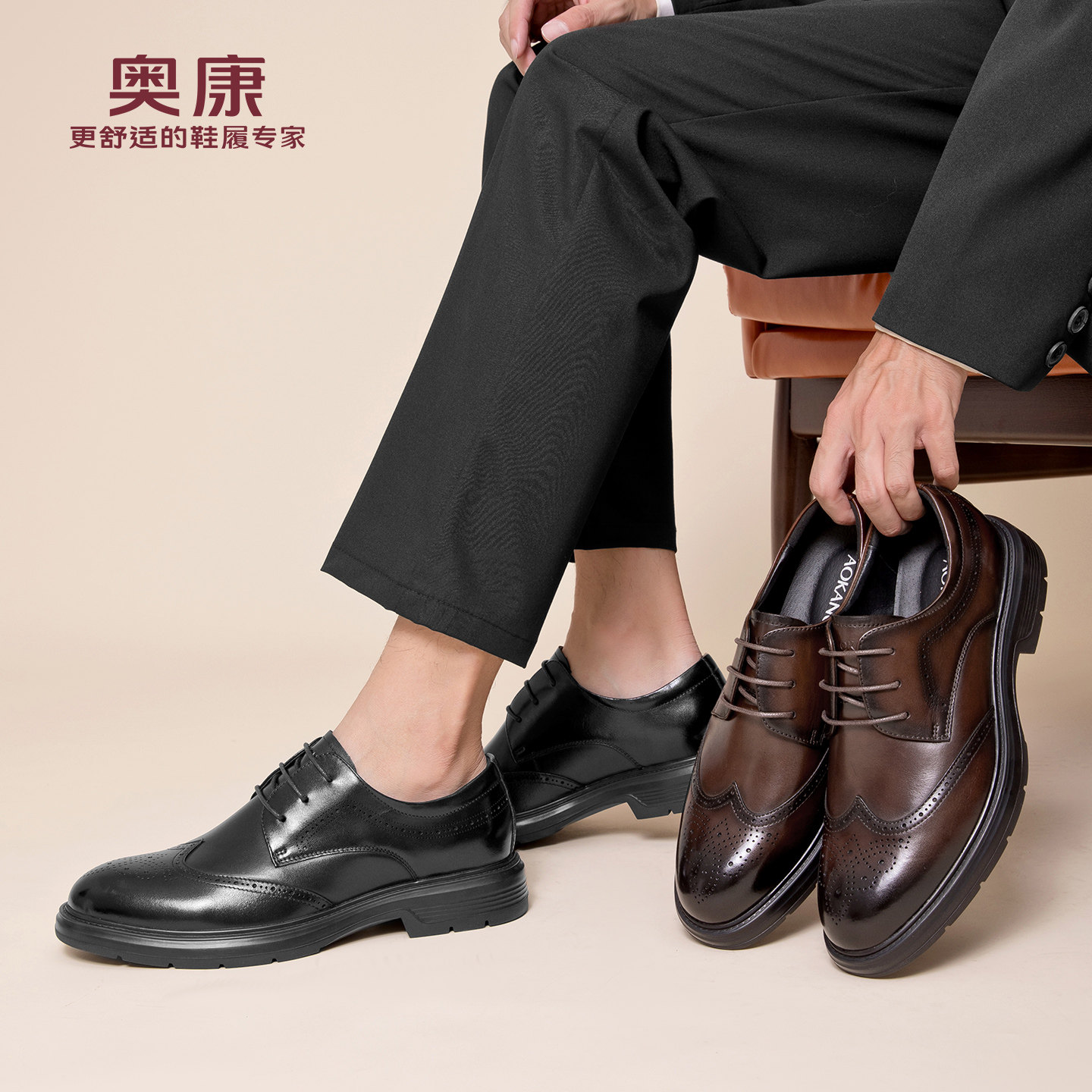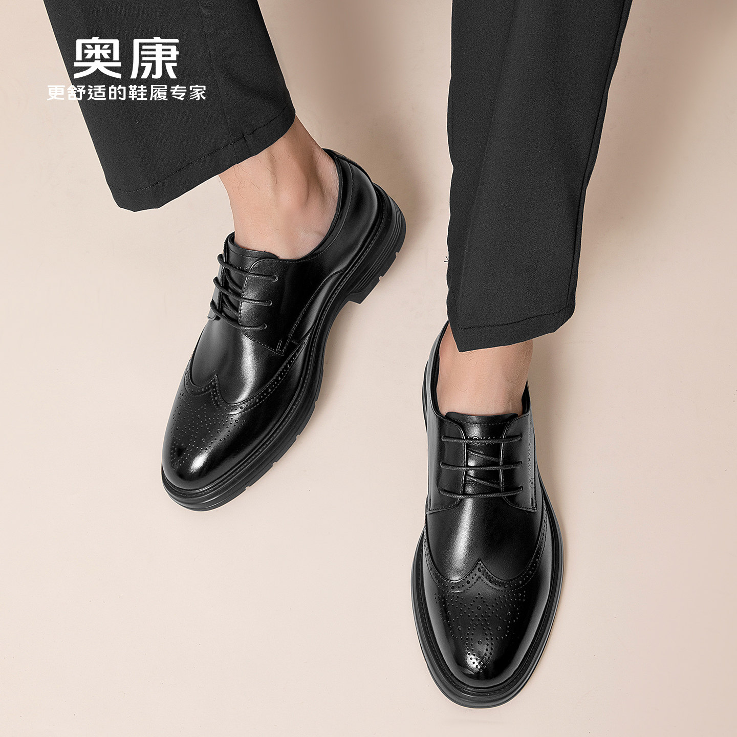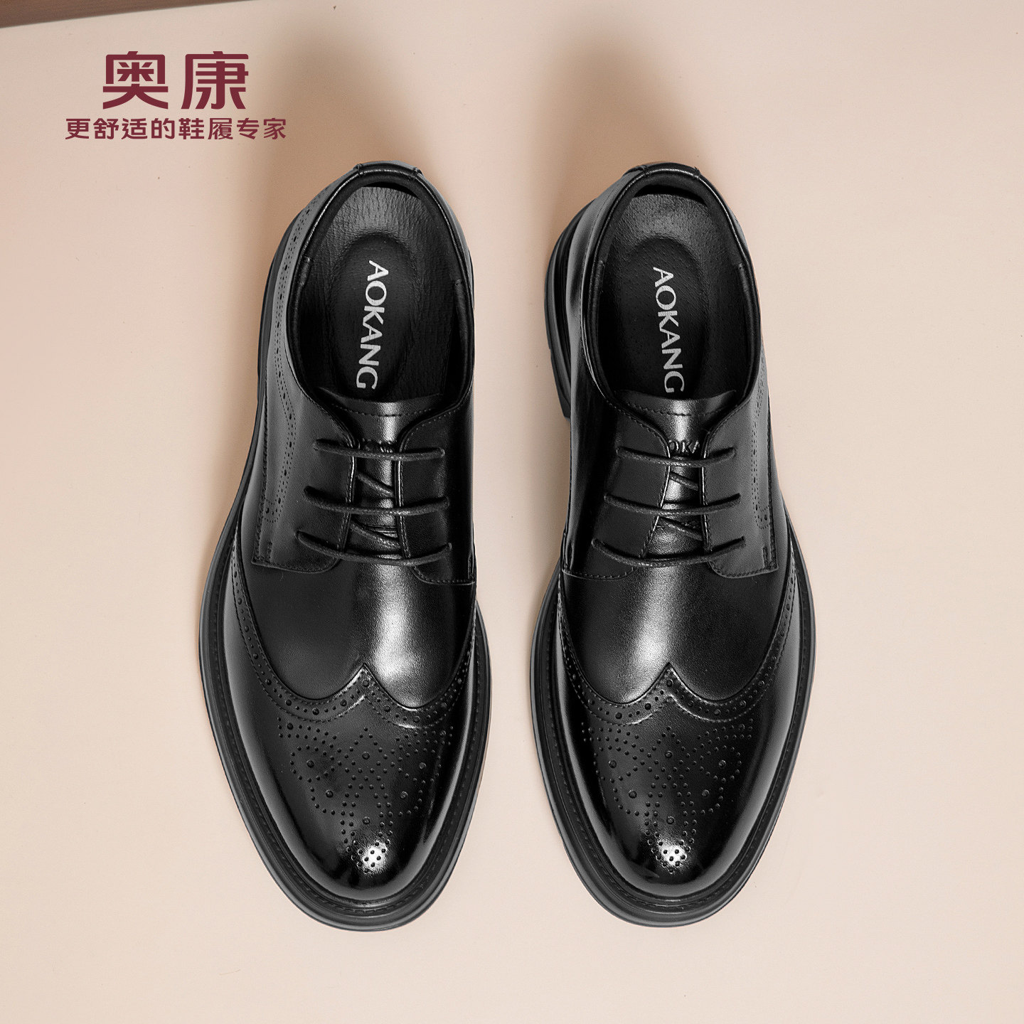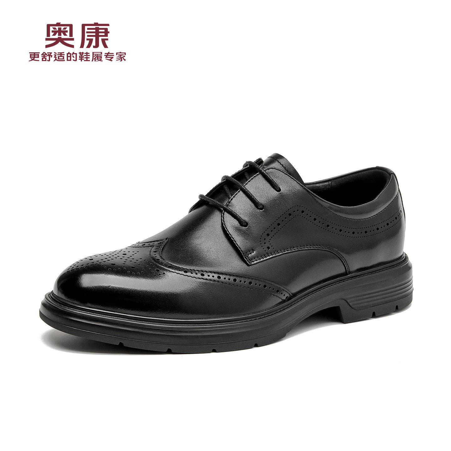 奥康 男鞋秋季新款男士皮鞋百搭商务正装英伦风布洛克皮鞋男N