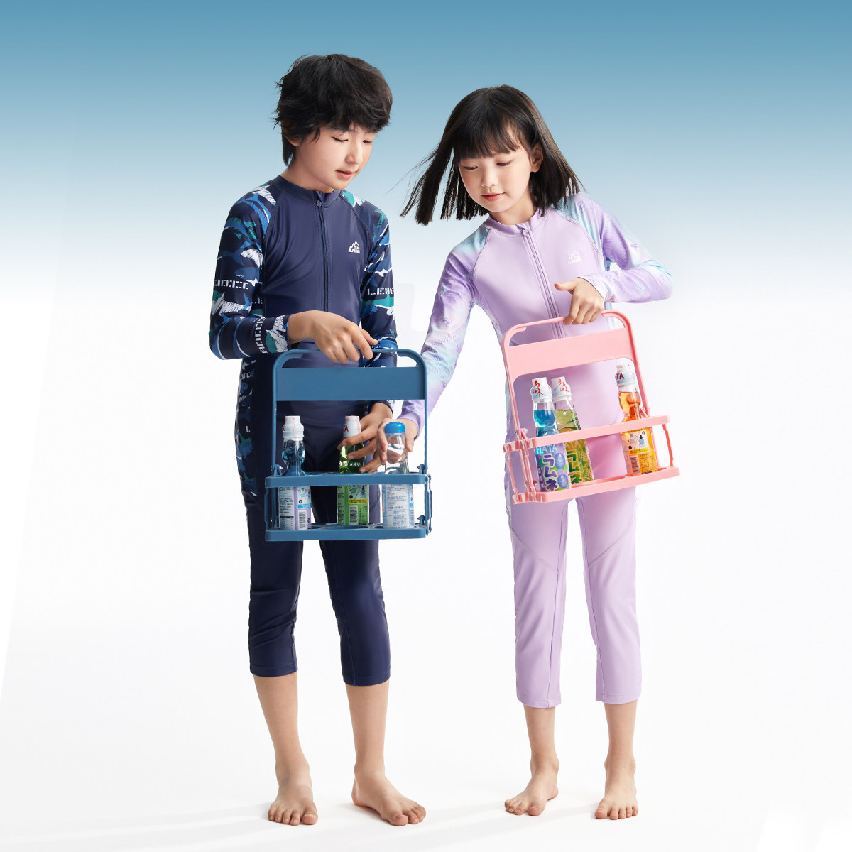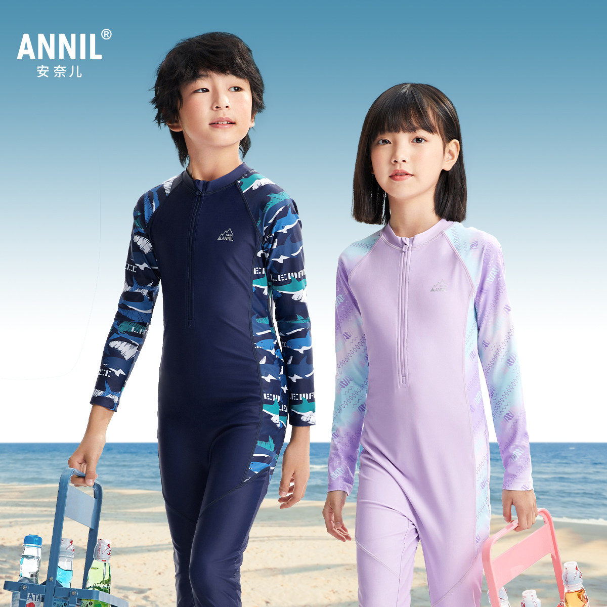 安奈儿童装男女童连体长袖泳衣裤套装2025夏新款贴身印花防晒
