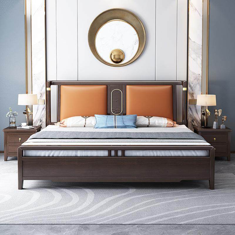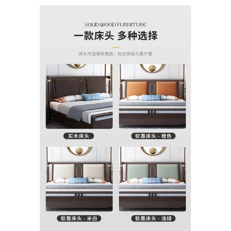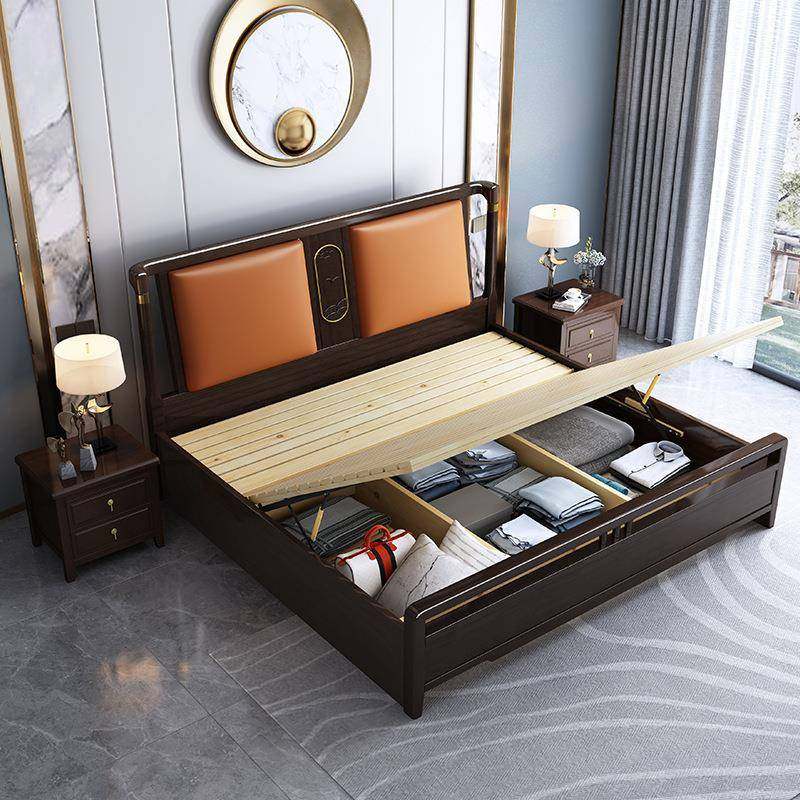 新中式床实木1.8米双人床现代中式轻奢卧室软靠床气压高箱床1.5m