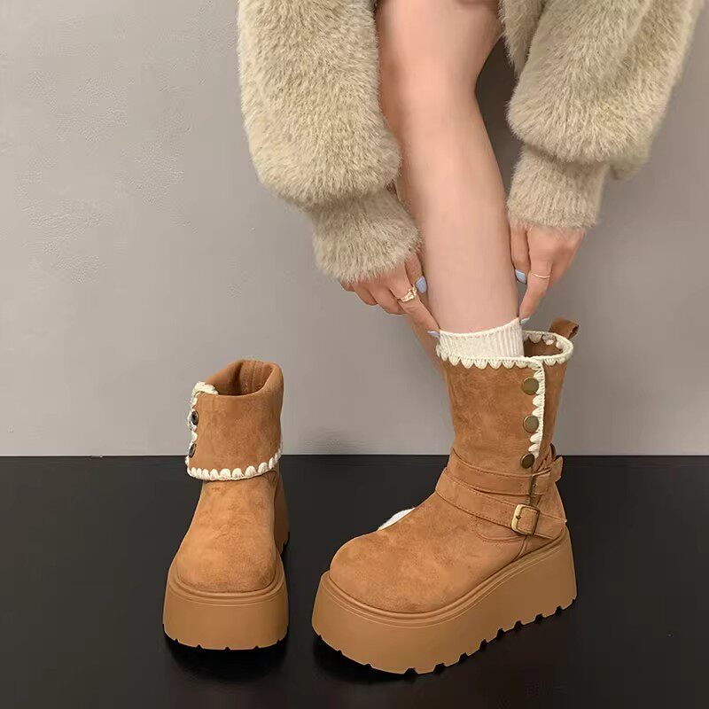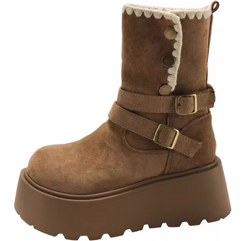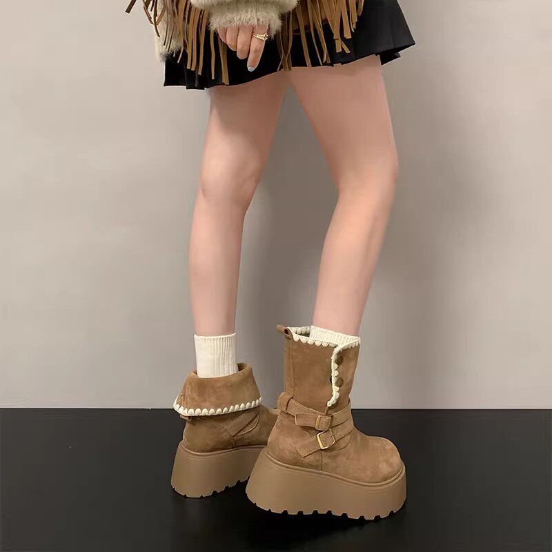 香港厚底雪地靴女2025新款冬季加绒小个子增高马丁靴加厚保暖棉鞋