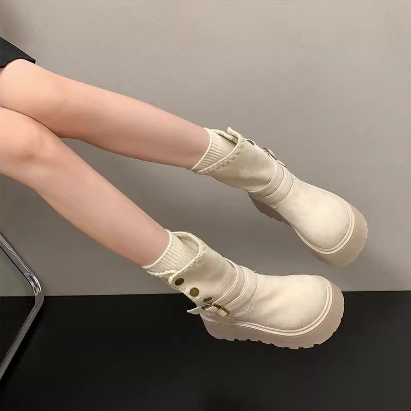 六点大叔内增高复古美拉德马丁靴女2025秋新款不过膝两穿西部短靴
