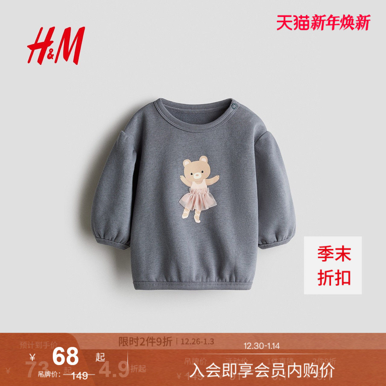 HM童装女婴卫衣2025年冬季新款印花圆领上衣灯笼袖绒衫1302320