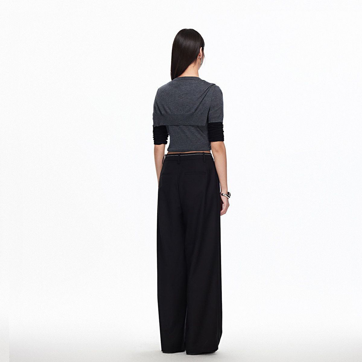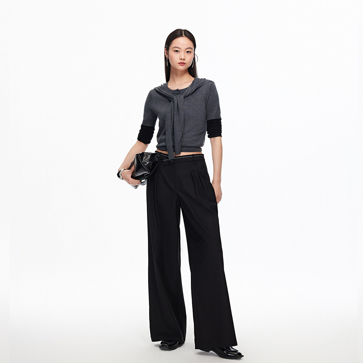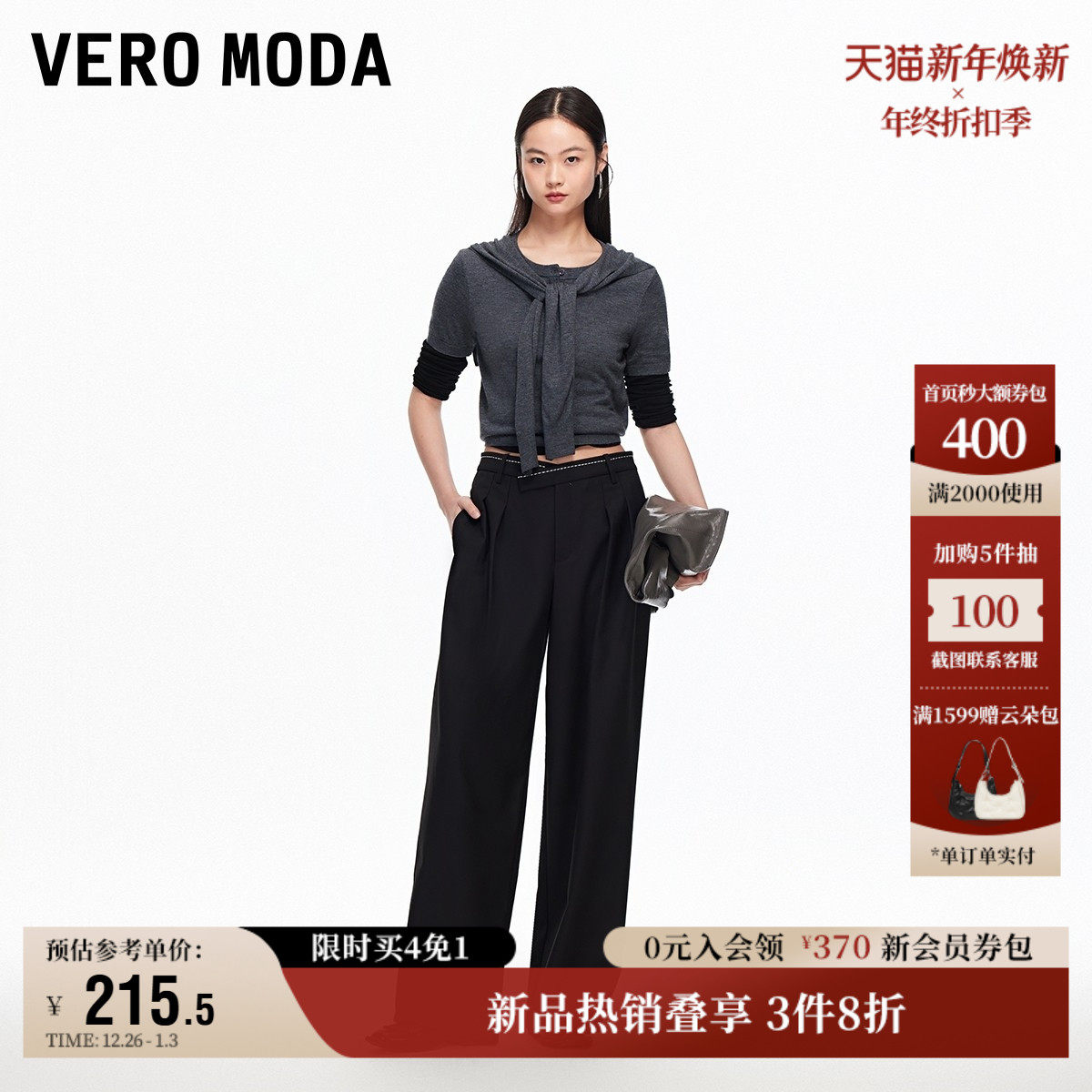 Vero Moda奥莱休闲裤女2025秋冬新款米粒绣腰头捏褶阔腿裤休闲