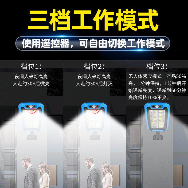 太阳能橙色壁灯蓝色人体感应户外庭院灯长方形防水照明家用小路灯