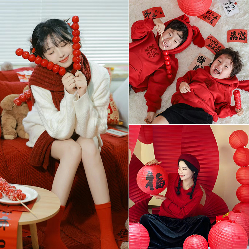 新年拍照道满月新生婴儿摆拍套装糖葫芦对联灯笼小摆件宝宝周岁百天生日儿童摄影写真氛围感拍照区布置小物件