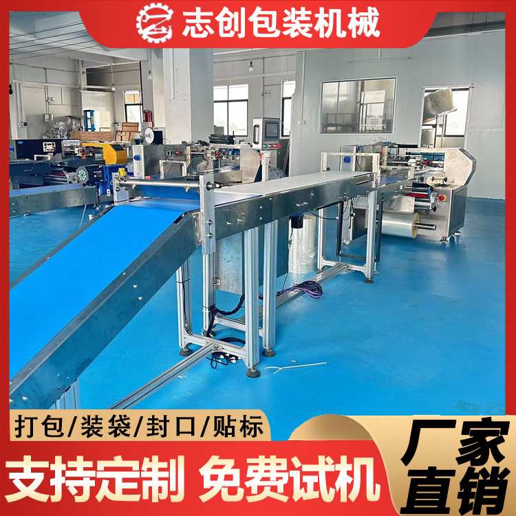600自动打包贴标包装机 冷冻海鲜装袋套袋打包机 休闲食品包装机