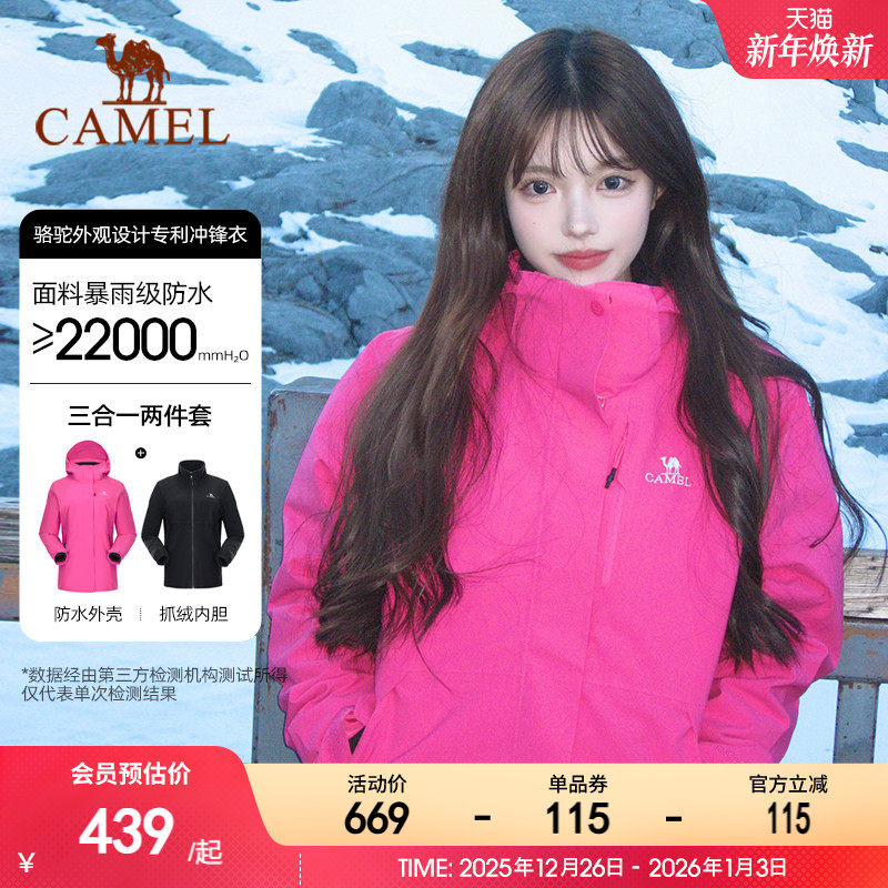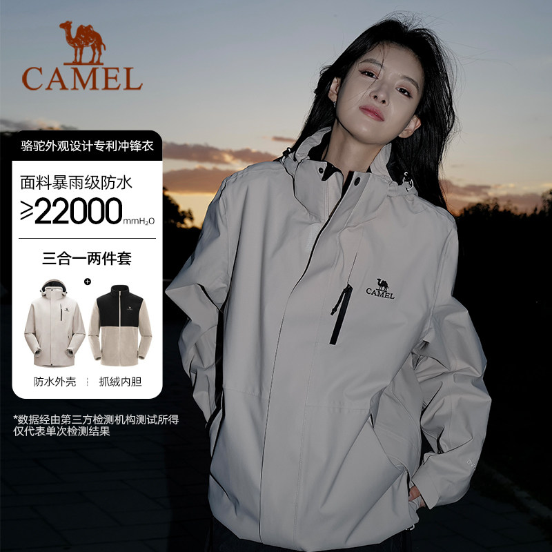 【双12超级爆品日】骆驼3514系列冲锋衣男女款三合一防风防水外套