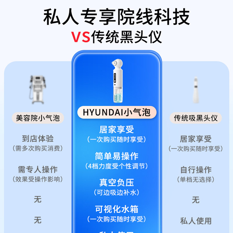 HYUNDAI现代吸黑头神器小气泡美容仪电动面部清洁仪去粉刺黑头