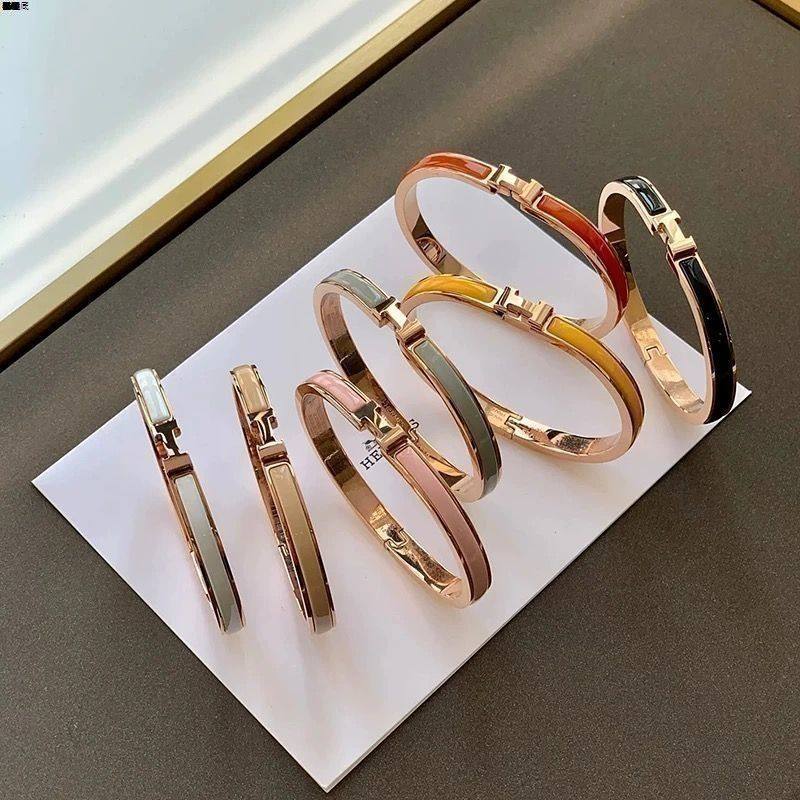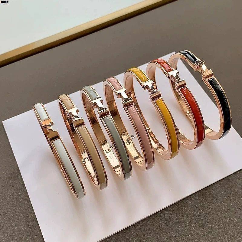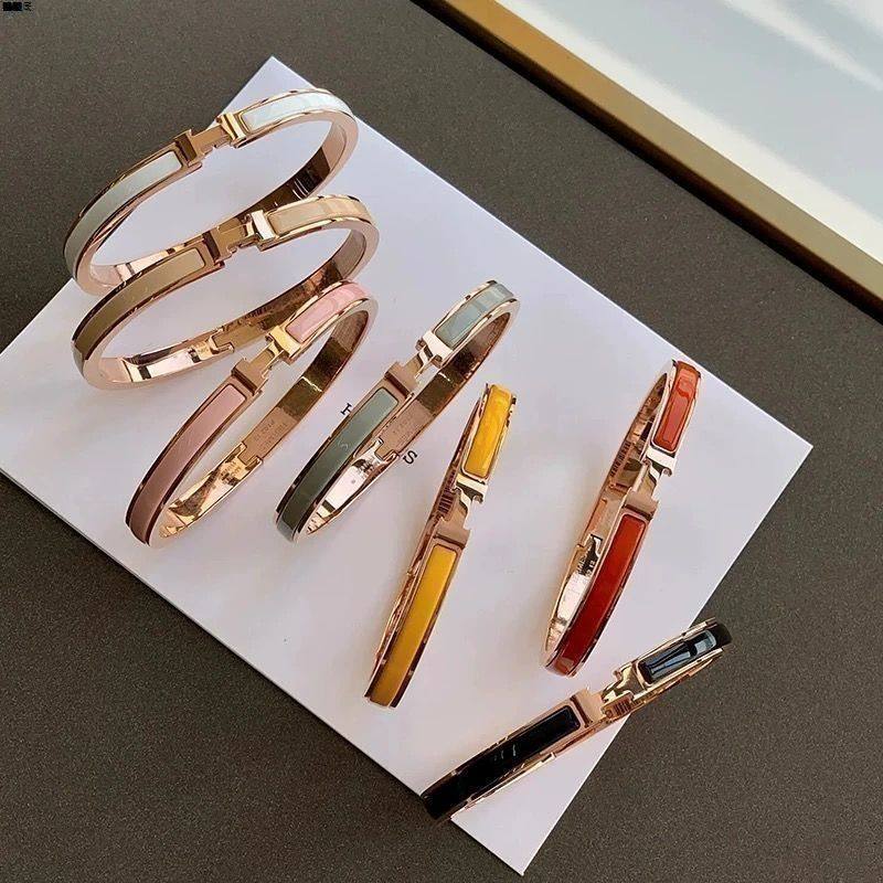 高端爱马款仕H字母手镯珐琅玫瑰金宽版轻奢男女情侣经典款H型手环