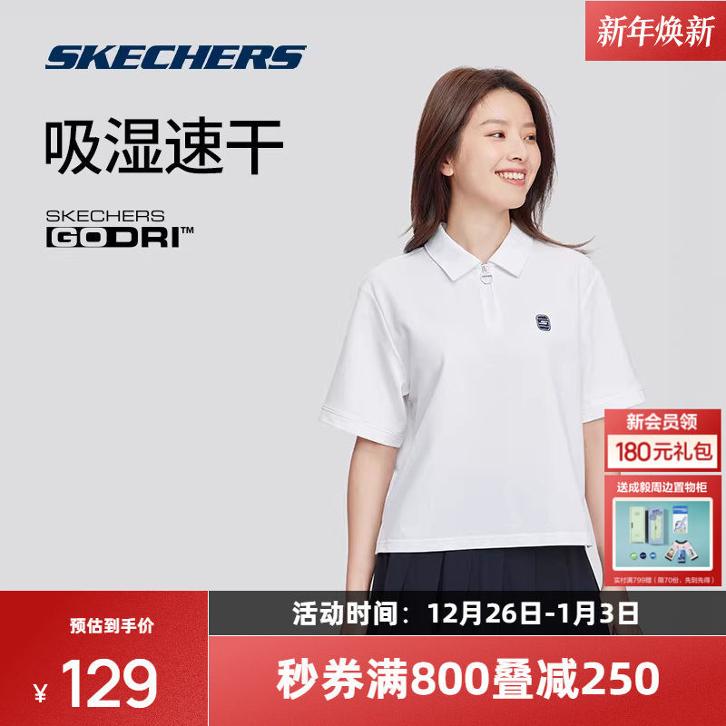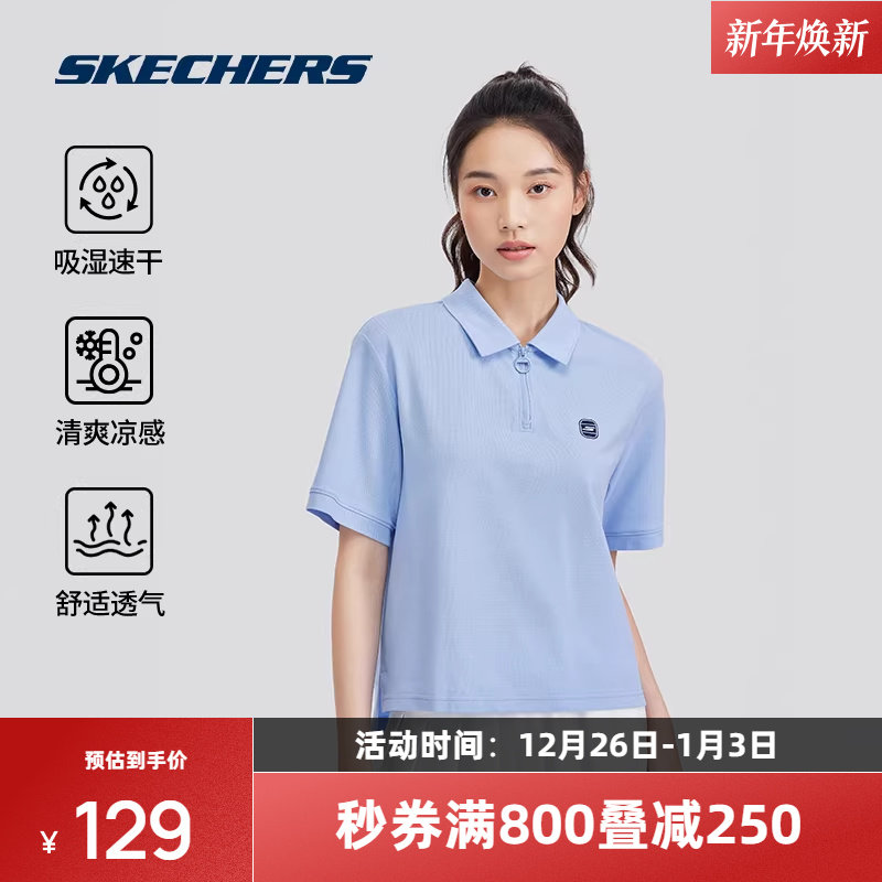 斯凯奇速干凉感POLO衫新品女子短款学院风百搭T恤时尚透气经典款