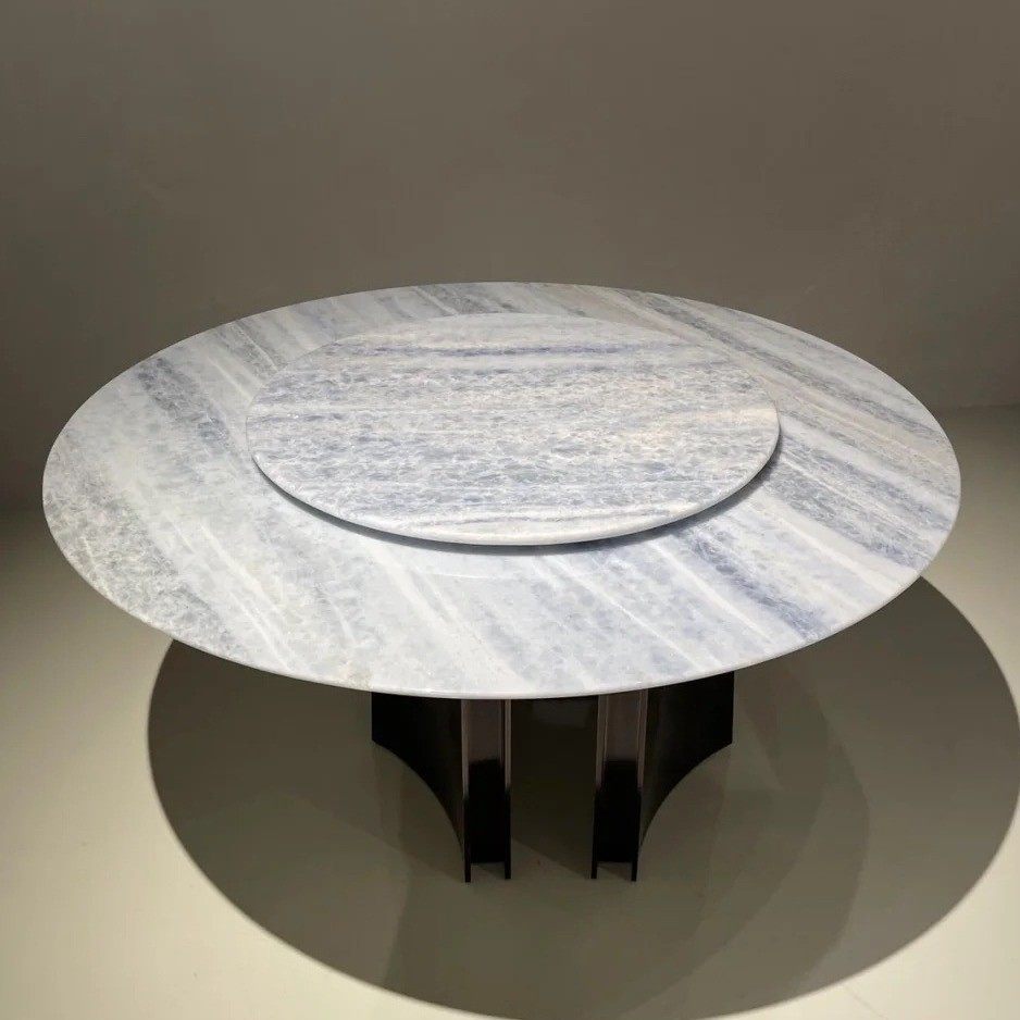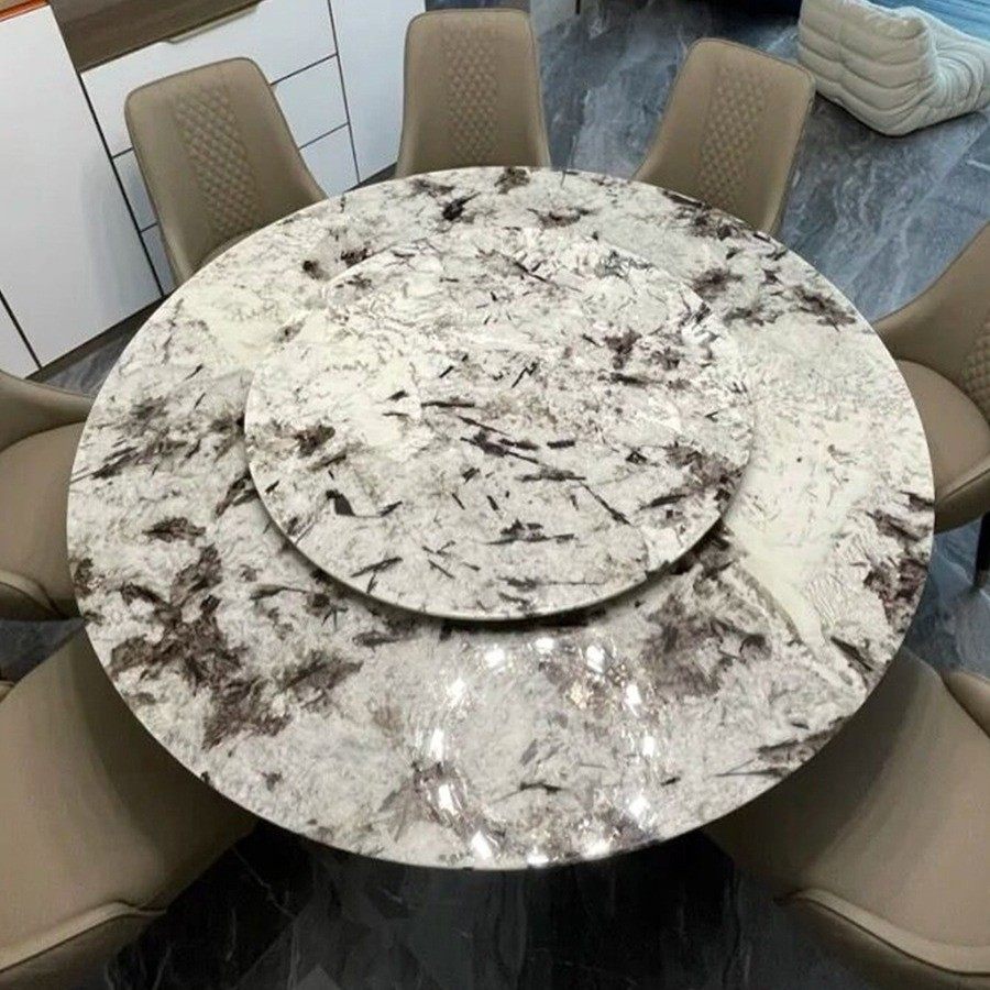 威尼斯棕天然大奢石圆形餐桌带转盘轻奢风别墅高档奢华大理石餐台