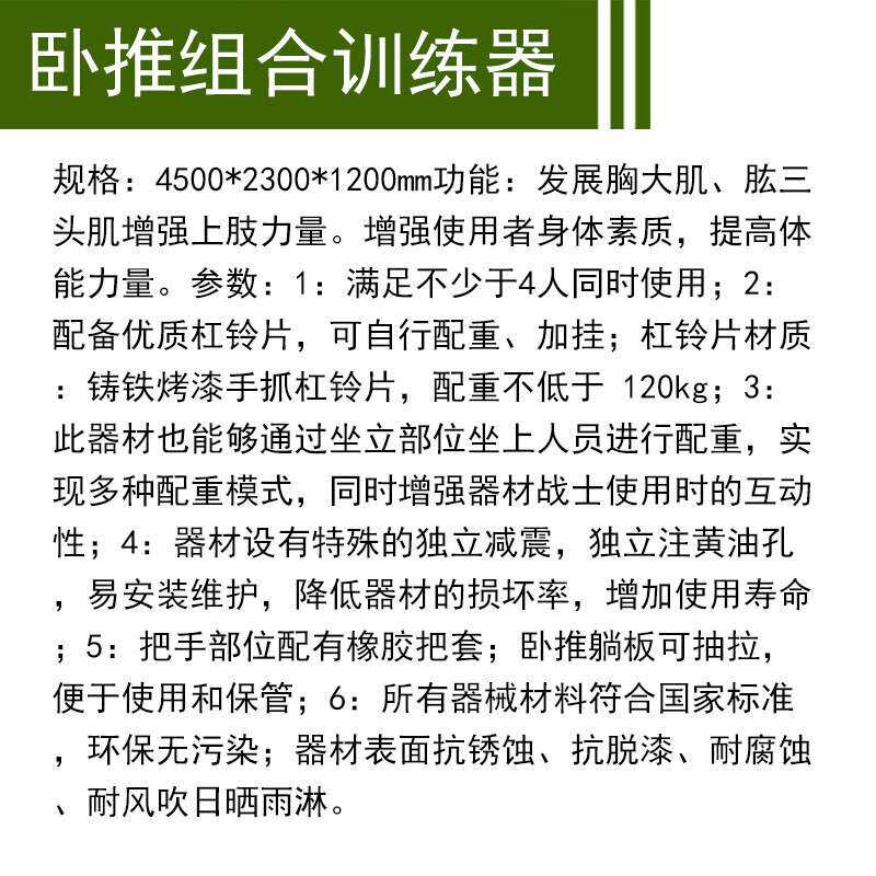 卧推组合训练器 室外多人健身综合体能训练器材