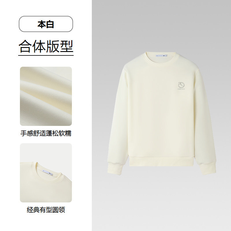 鸭鸭绵羊毛奥粒绒圆领卫衣2025年秋季新款男士简约百搭套头上衣Y