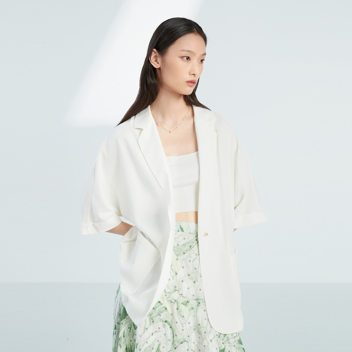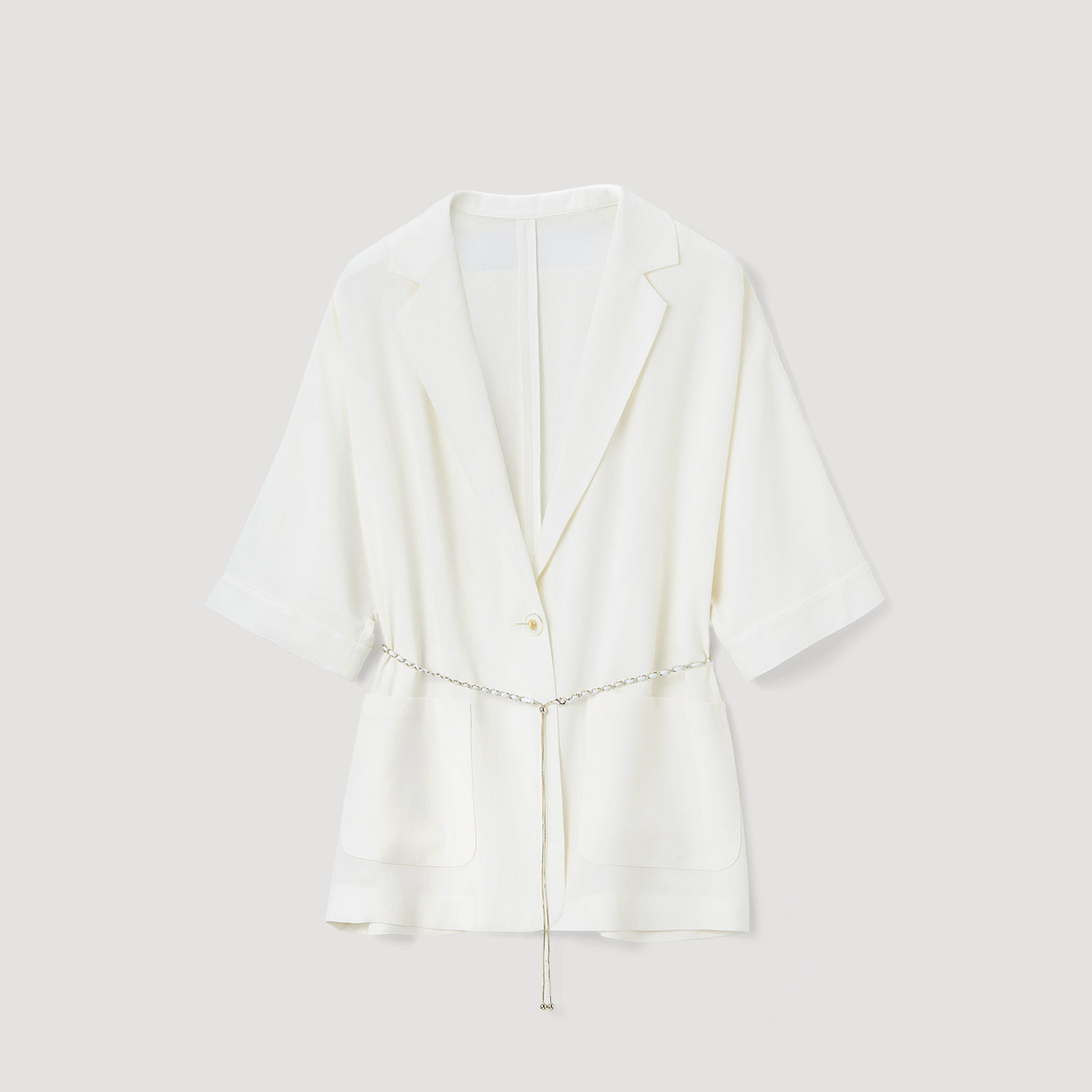 【呼呼专享】OVV春夏新款女装二醋酸平驳领随附腰链短袖西装外套