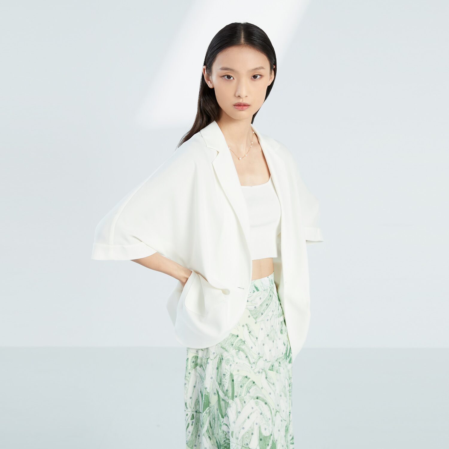 冰感缎西装女短款七分袖春夏秋百搭显瘦小个子长袖薄西服上衣外套