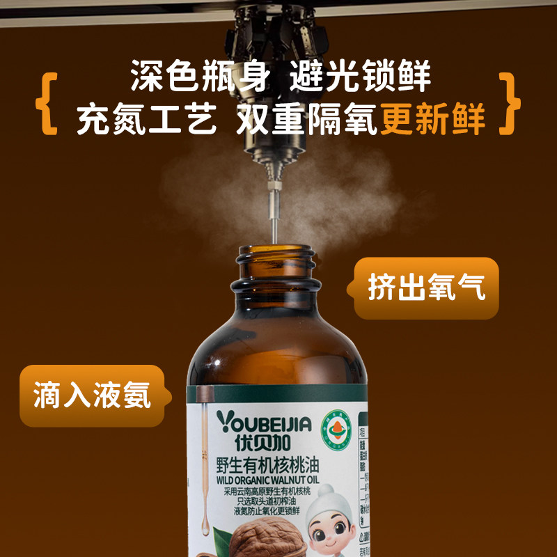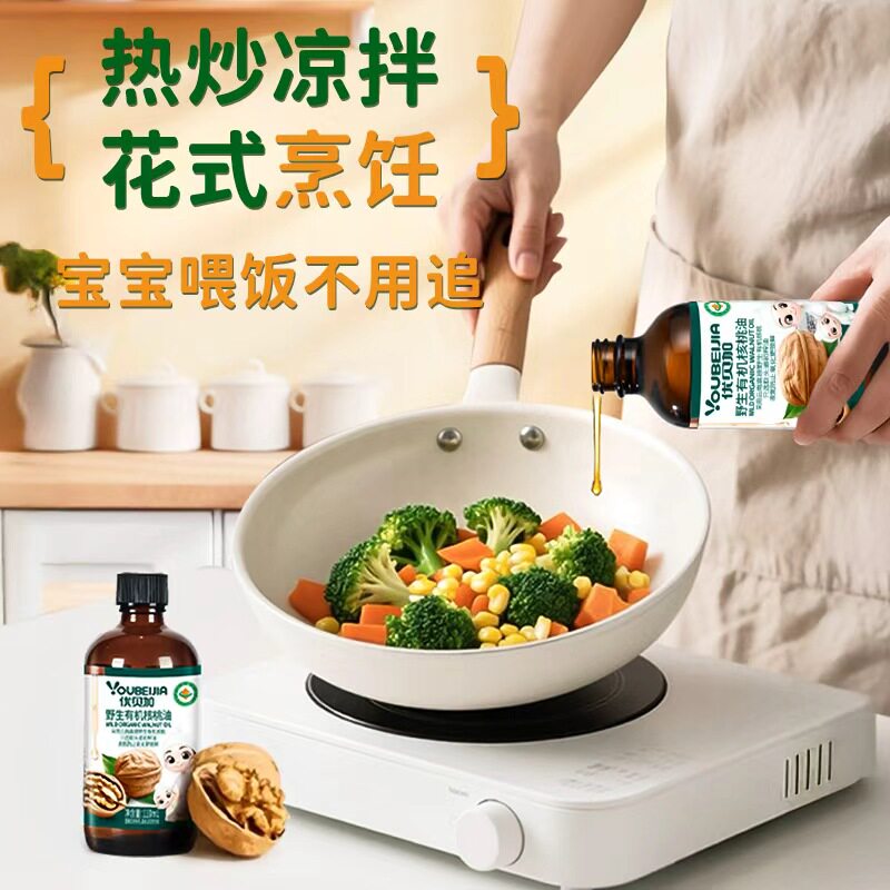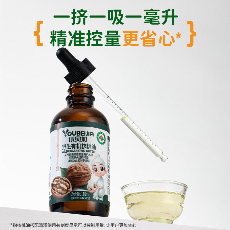 优贝加核桃油儿童食用搭配辅食油热炒食用油野生有机油110ml*瓶