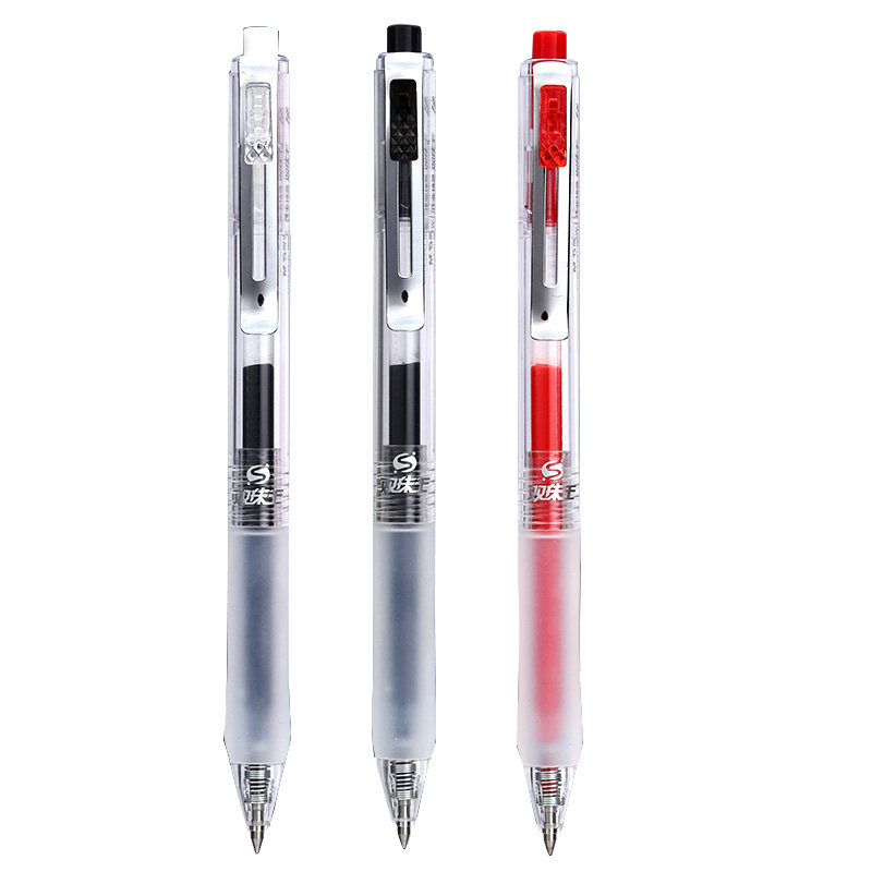 得力文具中性笔按动笔黑色0.5子弹头红笔学生用可定制笔广告笔企业展会礼品笔刻字商务圆珠笔s01升级超越k35